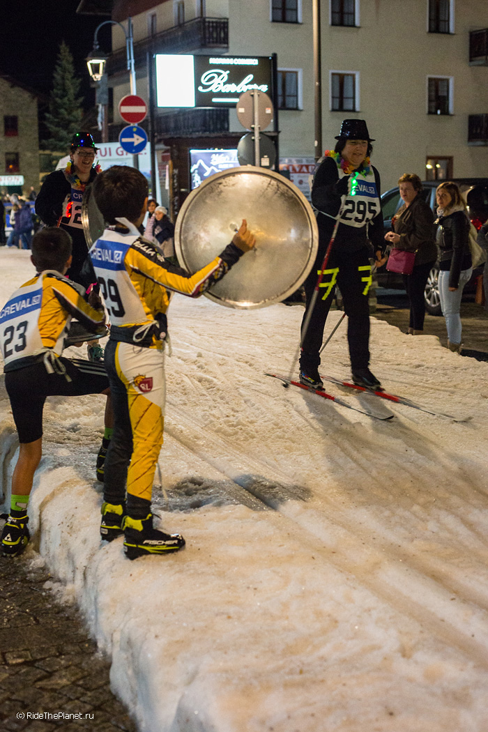 Каждая команда готовит костюмы и среди фейерверка идей можно увидеть и участников в традиционной старинной одежде на оригинальных деревянных лыжах, которым вполне может оказаться и сотня лет. При этом сама гонка проходит в вечернее время на центральной пешеходной улице Ливиньо, в обрамлении красочной альпийской архитектуры, и конечно же, это яркое событие собирает тысячи зрителей, как местных жителей, так и гостей курорта.