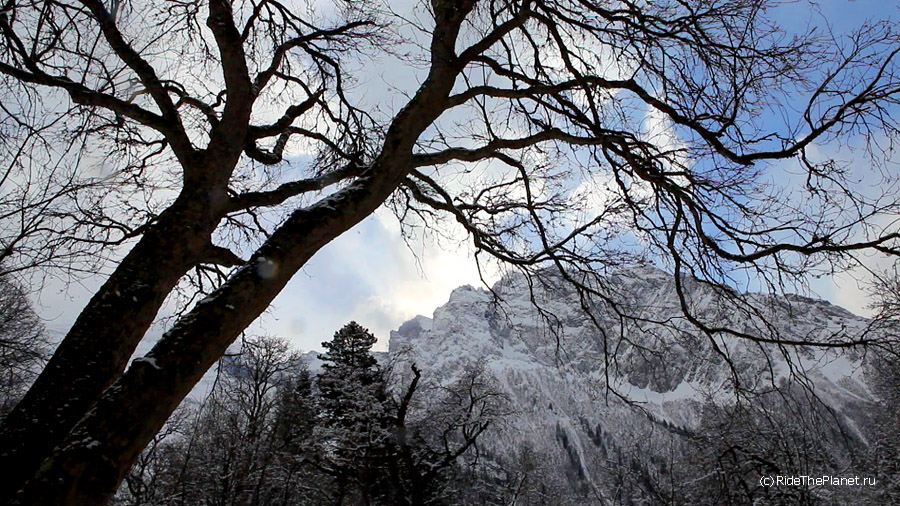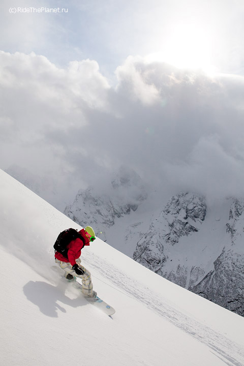 Но по большому счету настроение в Домбае такое же, как всегда. Тут очень красиво, особенно когда меняется погода или выпадает свежий снег. Вечерами есть куда пойти, можно посидеть с местными райдерами в уютной кофейне FreeDom, посмотреть кино, поболтать о том, как идут дела в регионе. Ребята строят планы на сезон, тренируются и ждут соревнований по фрирайду, которые запланированы тут на начало февраля. Зовут участвовать, но у нас в этом году свое расписание — в это время мы будем уже кататься и снимать индийский эпизод RideThePlanet в Гималаях.