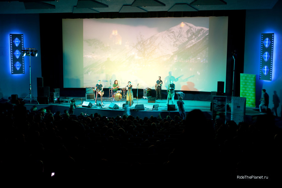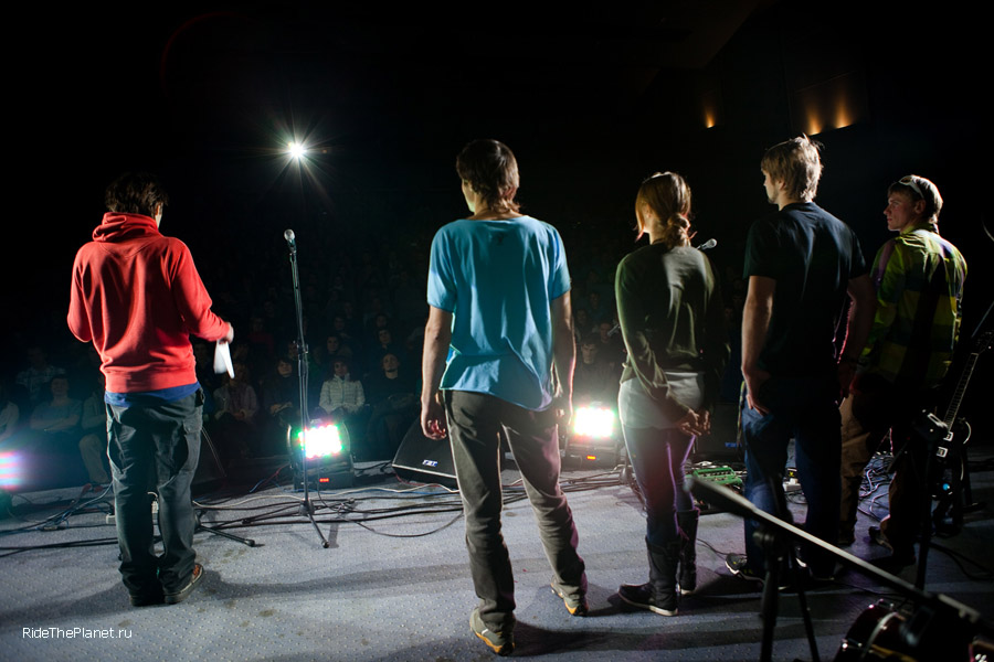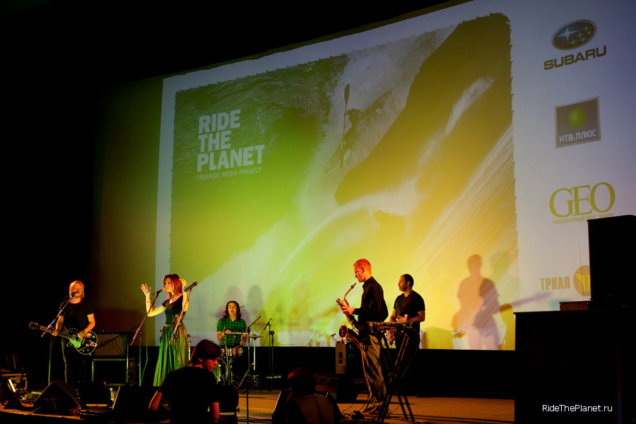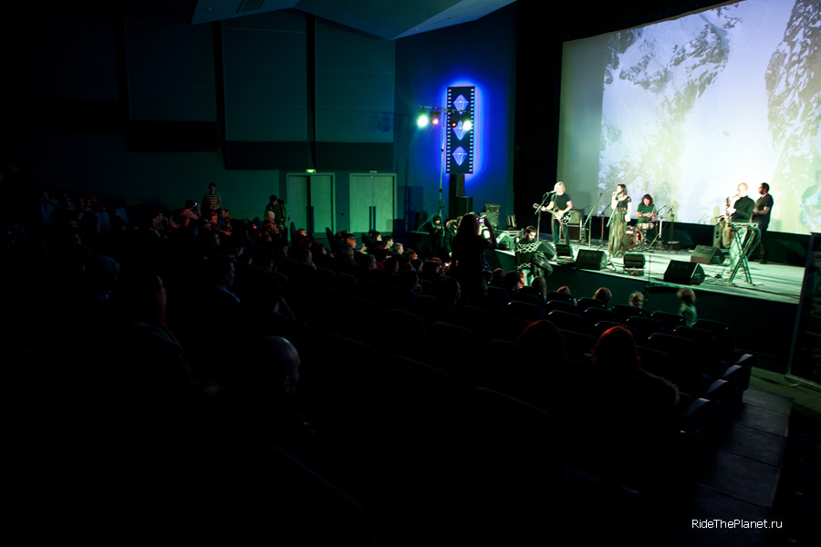 Первый календарный день зимы мы отметили празднично — в кинотеатре «Алмаз» прошел показ фильмов летнего и зимнего сезонов RideThePlanet-2012, а между сеансами живой концерт отыграла московская группа Tinavie — участники саундтрека к эпизоду «Кавказ. Whitewater». В этот субботний вечер в кинозале собралось более 600 человек. На премьере присутствовали и те райдеры RideThePlanet, которые оказались в этот день в Москве — каякеры Алексей Лукин, Егор Воскобойников, Алена Буслаева и Олег Головкин, и сноубордер Игорь Ильиных.
