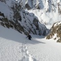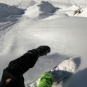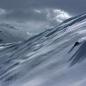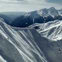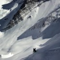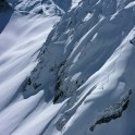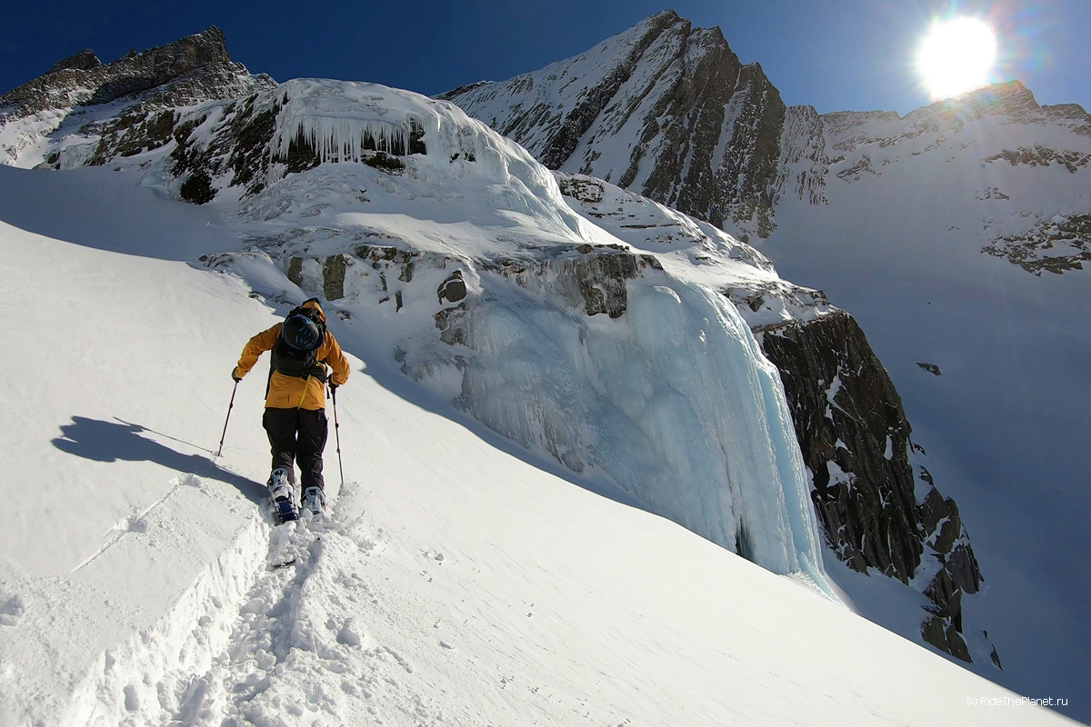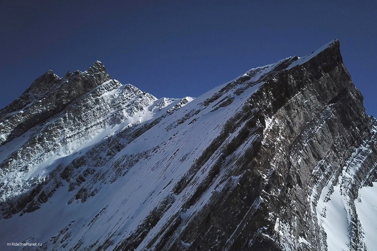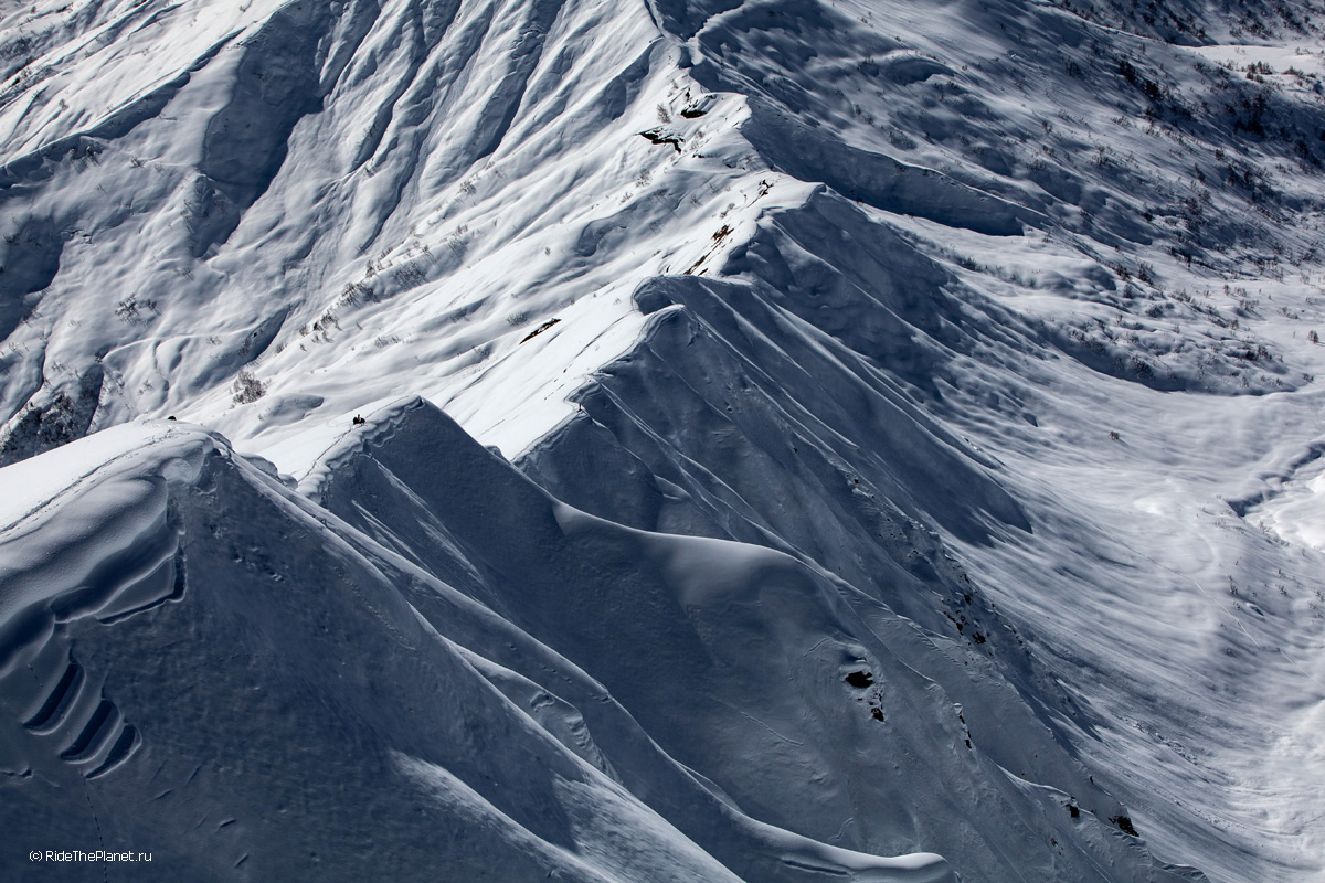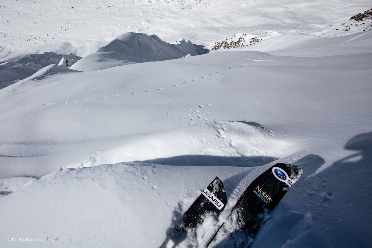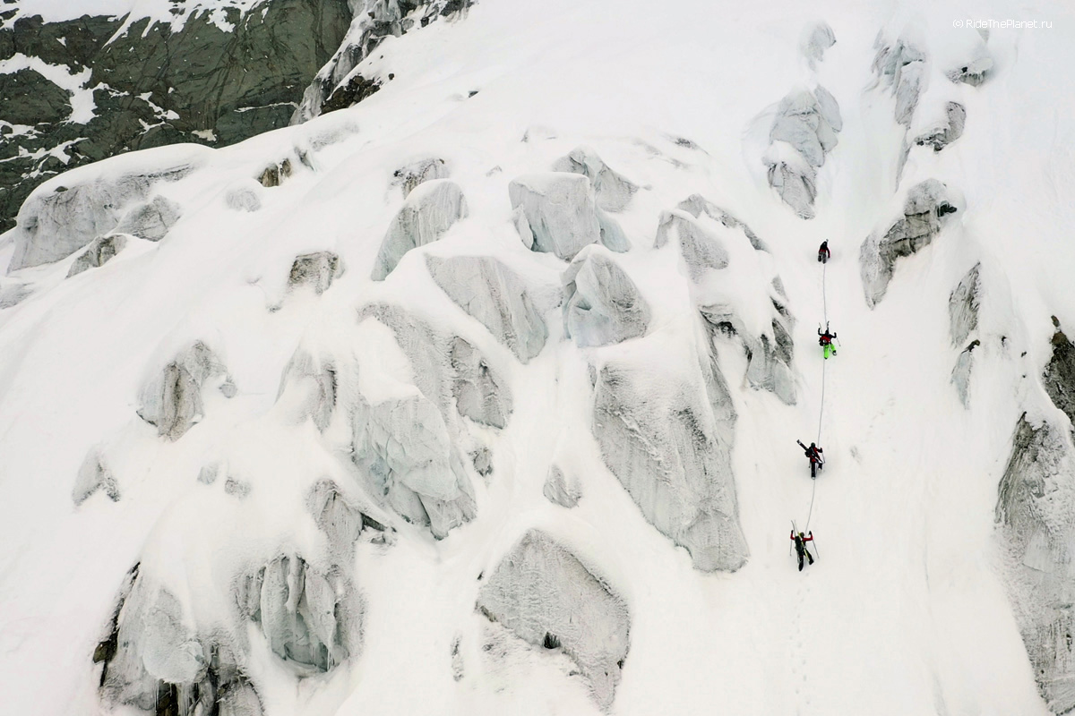 Гораздо логичнее здесь под хороший прогноз погоды заброситься в горы, обустроить базовый лагерь непосредственно «под рельефом» и затем раскатывать несколько дней интересные линии в этом районе.
