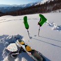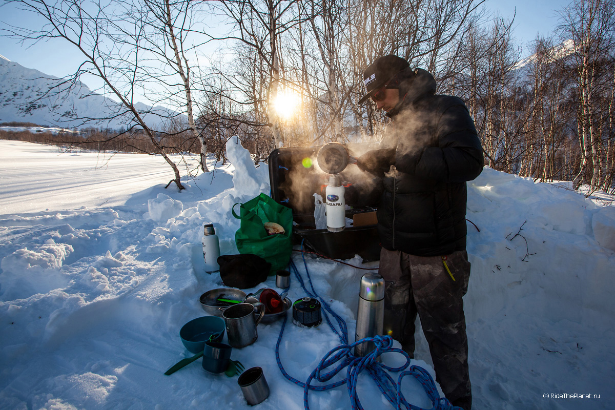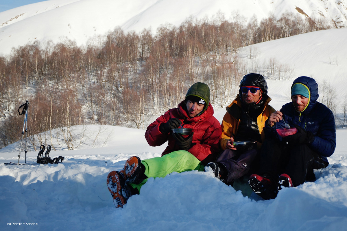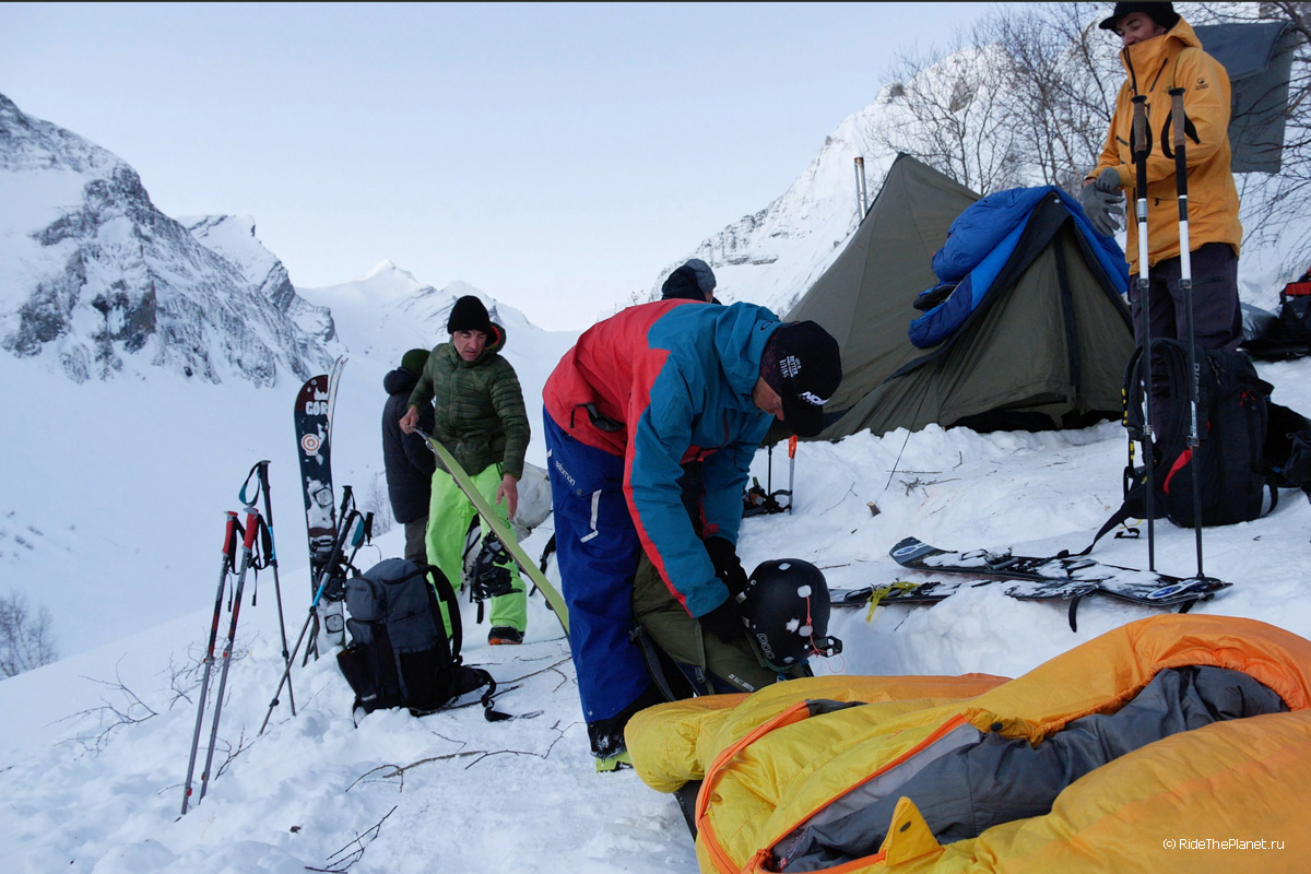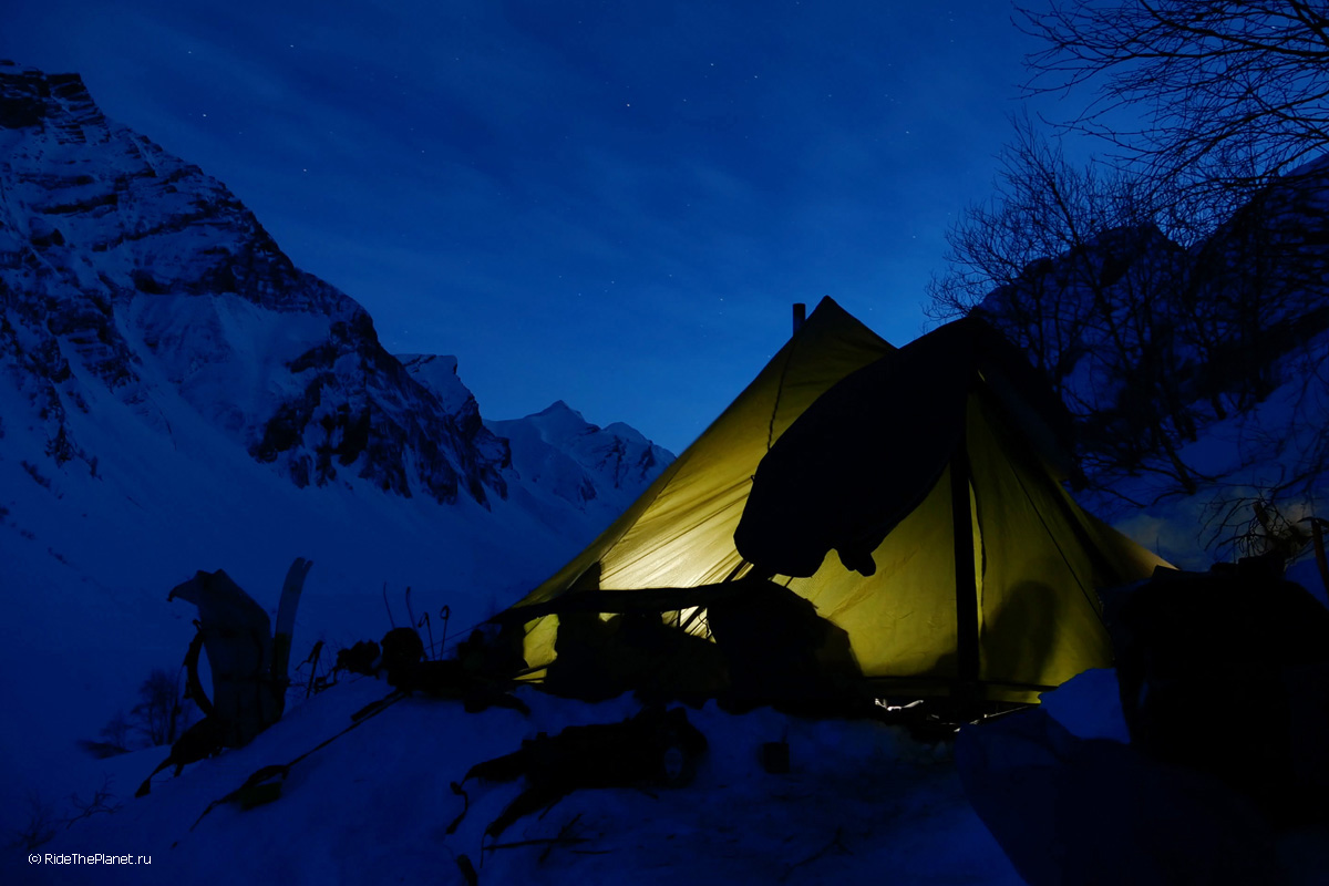 В этом году я на пару месяцев начал устанавливать в наиболее удачных фрирайдных районах технологичные зимние палатки с печками. Это делает жизнь в базовых лагерях комфортной даже в условиях зимы в абсолютно дикой природе. Это дает возможность лучше отдыхать и восстанавливаться после восхождений и катания. В одной из долин мы даже забросили в базовый лагерь мобильную баню и теперь после катания можно погреться и искупаться в заснеженном горном ручье.