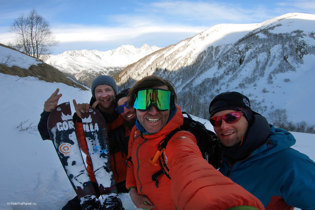 Команда RideThePlanet собралась в горах Грузии в регионе Рача для катания и съемок нового фильма, посвященного бэккантри-фрирайду. В этом путешествии приняли участие райдеры и гиды – Сергей Потапенко, Константин Галат, Андрей Москвин, Рустам Ибрагимов, Павел Огурцов, Дмитрий Павченко, видеооператор Владимир Горлов, а также американские лыжники Freddy Mondale, Phil Harlan и Johnny Lomas.