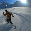 Бэккантри-маршруты и программы, которые я разрабатываю в горах Рачи в основном рассчитаны на подготовленных райдеров, имеющих опыт скитура и восхождений, обладающих базовыми навыками в альпинизме. Подобные трипы требуют от участников хорошего физического и технического уровня подготовки. Все районы катания здесь удаленные от цивилизации, поэтому в горах нам всегда приходится полагаться на собственные силы, думать о безопасности и доверять друг другу.