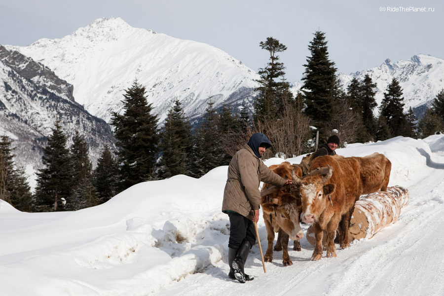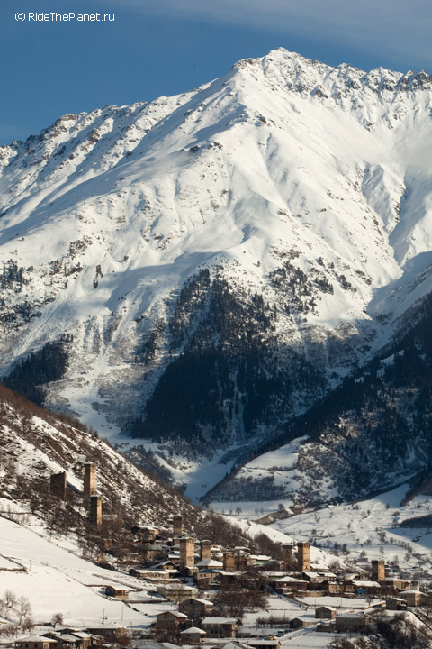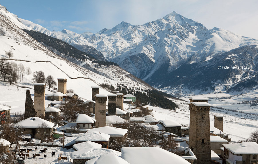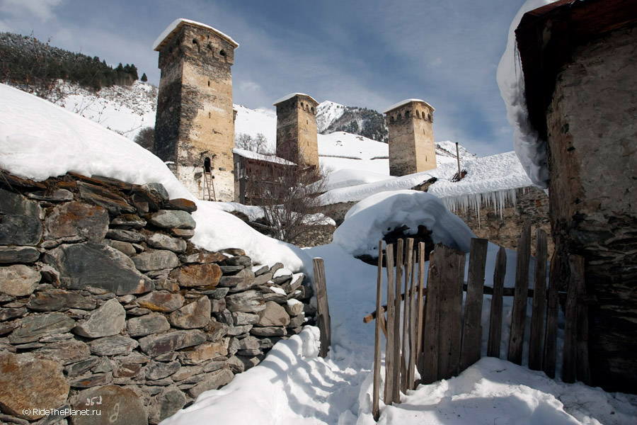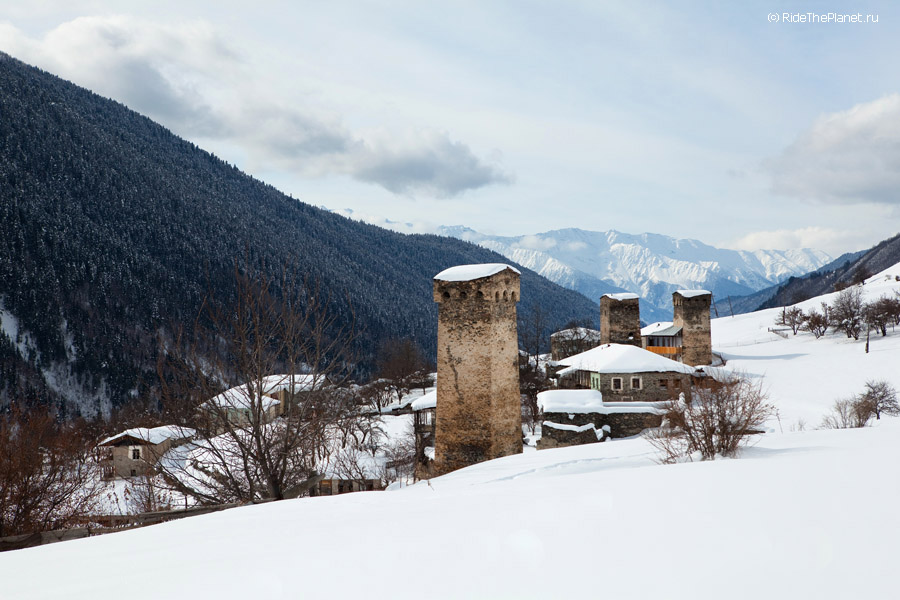 Зимой Сванетия всегда больше походила на затеряный мир — дороги, перебитые лавинами, укрытые снегом деревни, где живут летними припасами... Так было раньше. Но этой осенью на дороге до Местии положили асфальт, и она стала немного легче, и дорожные службы следят за ее состоянием. А по дороге, связывающей Местию и Ушгули, пограничную деревню Верхней Сванетии, на хорошем полноприводном автомобиле проехать зимой все же легче, чем летом. Хотя в Ушгули, с ее «лесом» боевых сванских башен, которых там десятки, нам попасть не удалось, из-за завала дороги.