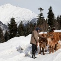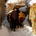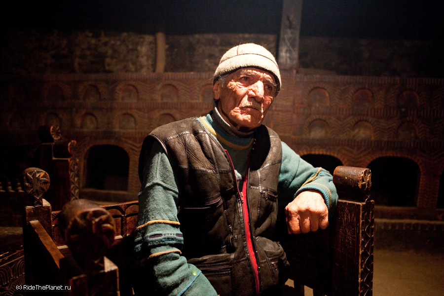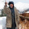 Лавина перекрыла путь, и мы быстро поменяли план – решено было остаться на ночевку в близлежащей деревне, тем более, что там, оказалось, живет знакомая Веронике Сорокиной по летним путешествиям семья. Часовой подъем по следам лошадей по колено в снегу, и мы в деревне в три дома, Кала. Хозяин, Уча, уже три месяца не спускался вниз – но ему за 70, а срочных дел там у него пока нет. Большим хозяйством же занимаются его молодые дочери – двое из шестерых, оставшиеся в этой глуши с родителями, предпочтя ее столичной жизни в Тбилиси. Здесь плохо ловит мобильный телефон, а ближайшие соседи живут внизу, у дороги. Остальные дома вокруг покинуты, и семья Учи постепенно занимает их под свои нужды. Но на этой земле стоит, со средних веков, родовая церковь его семьи, под стенами которой похоронены предки. Поэтому уходить ему некуда. А жизнь, после развала советских колхозов, снова постепенно начинает налаживаться – летом в этот гостеприимный дом можно прийти пожить как в гестхаус.