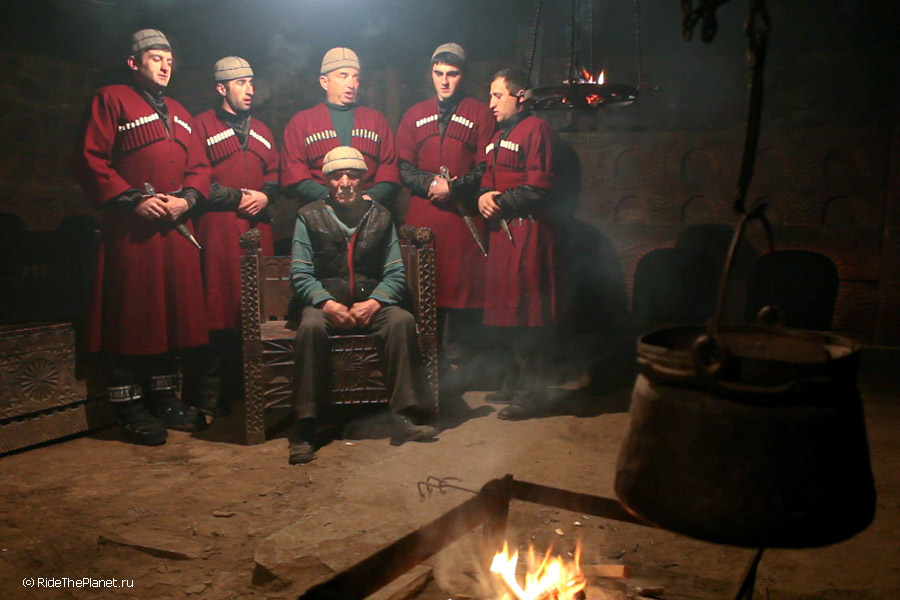 Благодаря этой смене маршрута, нам удалось прожить сутки в сванской семье и испытать на себе удивительное гостеприимство хозяев. Уже через час после нашего прихода стол ломился от незатейливой, но вкуснейшей еды – стопки хачапури, вкуснейшая жареная картошка, соленья, тарелки с мясом и горячий хлеб только что из печки, а украшали натюрморт запотевшие графины с домашней чачей… Тосты по порядку – «за Бога», «за Святого Георгия», «за родителей», «за гостей», «за предков», «за детей»… Здесь живут летними запасами, но не впроголодь – хотя кто знает, ведь ради гостя тут выкладывают на стол все, что есть в доме.