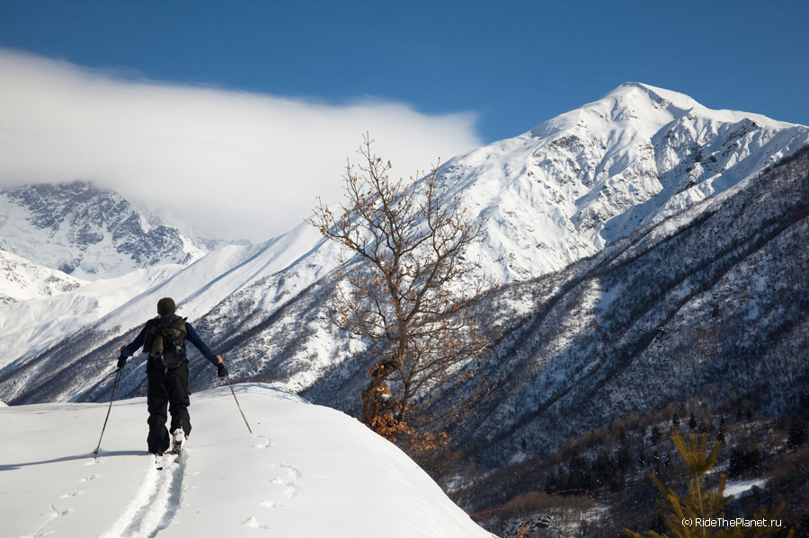 «Сейчас для катания в Местии построена одна канатка, которая покрывает зону неплохого леса с нормальным уклоном, но она достаточно короткая, 400 – 500 м перепада. Трасса отлично сделана, с ночным освещенным катанием, и вообще по FIS-овским стандартам там можно проводить любые соревнования» — говорит Константин Галат. – Так что в ближайшие несколько лет катание в Сванетии – это катание в лесу под этой канаткой и формат ски-тура. Как и везде в горах, здесь масса вариантов маршрутов, с красивейшими панорамами гор, интересными рельефами, с видом на сванские башни внизу…»