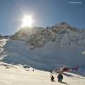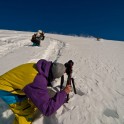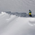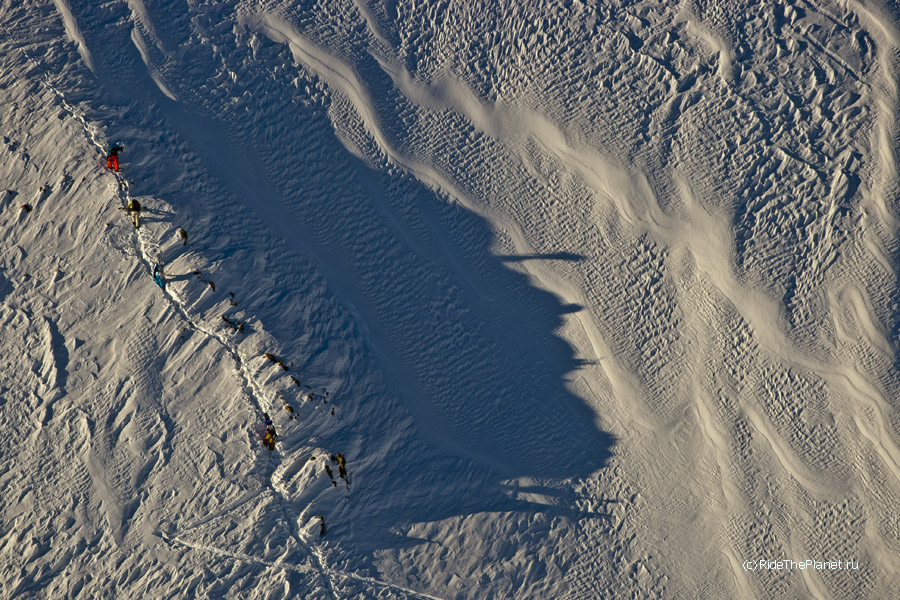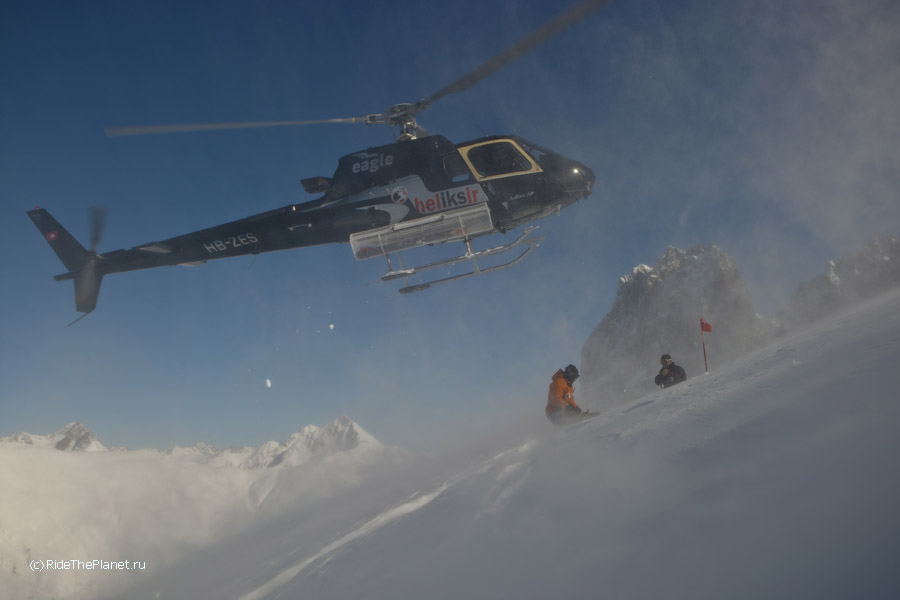 Лавиноопасная ситуация влияла и на то, какие пути мы могли выбирать для катания все наши дни в Гудаури. Два подряд мощных снегопада перед нашим приездом – первый, улегшийся на слой изморози, а второй – с постоянным шквальным ветром, — создали показательные для изучения лавин условия. Склоны лопались и сходили даже при приближении к ним вертолета. А только приехавшая с курса подготовки горных гидов Оксана Чекулаева копала шурфы и фотографировала снежные кристаллы, поражаясь тому, насколько «образцовая» сложилась обстановка со снегом :)