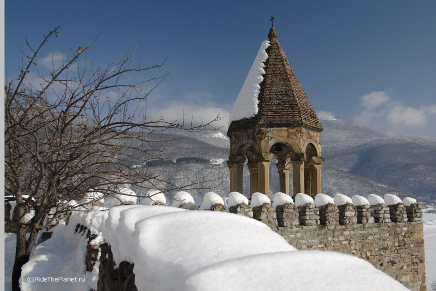 Пожалуй, наиболее характерным впечатлением от бэккантри в Грузии для нас стало то, что некоторые дневные маршруты можно объединить с походами к достопримечательностям. Эта страна – живая история, и даже из окна машины по пути в Гудаури можно увидеть множество памятников – сторожевых башен, развалин укреплений и крепостей, — которым сотни и сотни лет. В селениях и горах множество действующих храмов, и добрым гостям из России, как братьям по вере, рады в каждом из них.