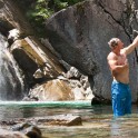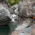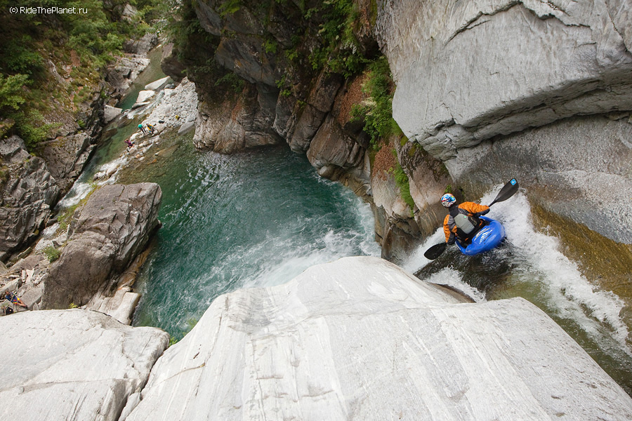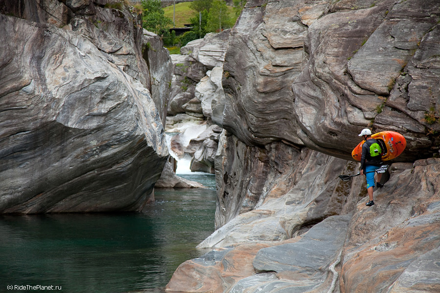 Визуально Швейцария сильно отличается от соседней Италии. В нашей поездке сплав в Швейцарии также очень сильно отличался. В Италии часто хотелось, чтобы в реках воды было чуть поменьше, здесь же нам воды в буквальном смысле не досталось. Три года назад я сплавлялся здесь по красивейшей реке Verzaska, было интересно и динамично, а сейчас на этом месте тек маленький ручеек в белом каньоне, на скалах которого загорали семьи, приехавшие на курорт к озеру Lago Maggiore. Даже в озере, образованном высоченной дамбой, с которой на бандже-ремне прыгал Джеймс Бонд, воды было явно на несколько метров меньше, чем обычно. Мы все же прокатились по реке, уж очень она красивая. С нами сплавился и оператор проекта RTP - Олег Колмовский, некогда член сборной России по фристайлу на бурной воде, который последний раз сидел в сплавной лодке около 10 лет назад. Сказал — понравилось!