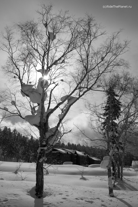 Очень красиво! Здорово, что вам удалось увидеть солнце в Японии. На следующий день, после того, как мы разделились, в Нисеко вышло солнце и я смог впервые увидеть кратер противоположного вулкана и море по обе стороны горы. Но снег скис в первый же день, а затем замерз, так что солнечная неделя прошла под знаком корки )) А на заключительный день сегодня нам опять дали тонну павдера, чтобы не оставить нас с тоске в день отъезда. Жалко, что вы уехали не на день позже – можно было бы отснять много картинок с морем и горами в бэкграунде. А я даже не взял с собой фотоаппарат и только сделал пару кадров на телефон и мыльницу.
