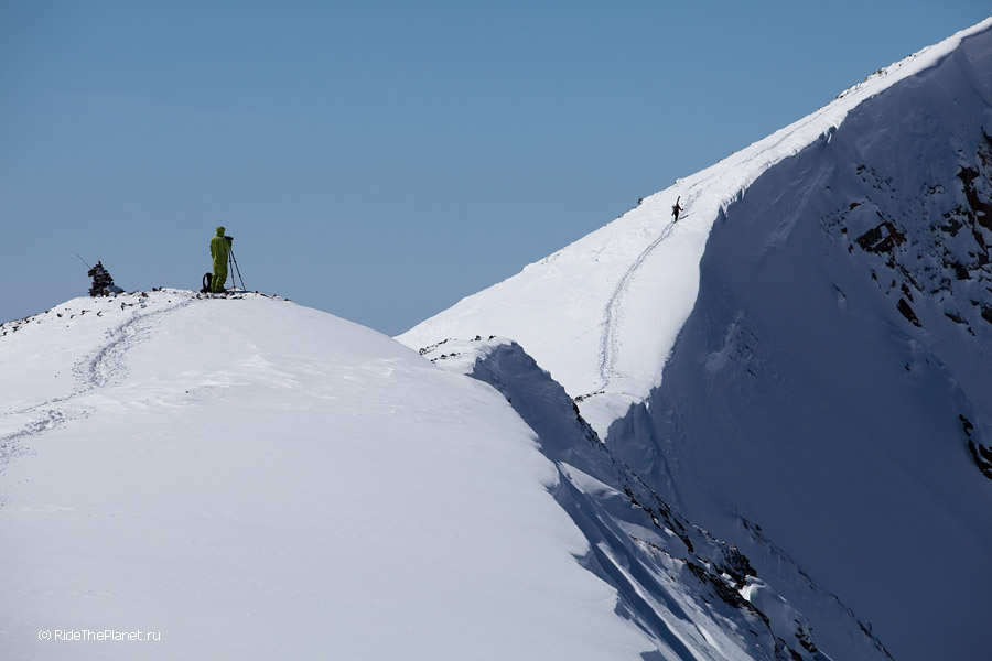 Несколько дней назад выдался долгожданный солнечный и безветренный день и удалось прокатиться и поснимать большие и довольно экстремальные линии с гребня, который здесь называют SharkFin, и с вершины Афарват — высшей точки района. Саша Байдаев, Егор Дружинин, Вероника Сорокина и я выбрали себе по линии с гребня и не без удовольствия их проехали. Костя «Панда» Чураков и Даша Пуденко наблюдали за процессом в объективы.