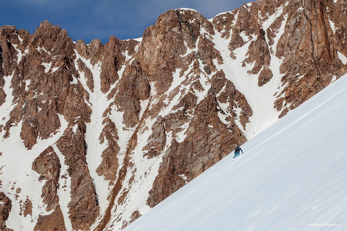 При желании фрирайдеры найдут в этих горах спуски и маршруты любой сложности – от широких ледниковых полей до техничных ледниковых линий с ледопадами и большими уклонами, от заснеженных гребней до крутых скальных кулуаров. Главное, находясь здесь – это иметь силы, хорошую акклиматизацию и желание – вставать с первыми лучами солнца и совершать многочасовые скитур-восхождения, и тогда каждый день, в награду за потраченные усилия, будет неповторимый спуск в окружении величественных ландшафтов.