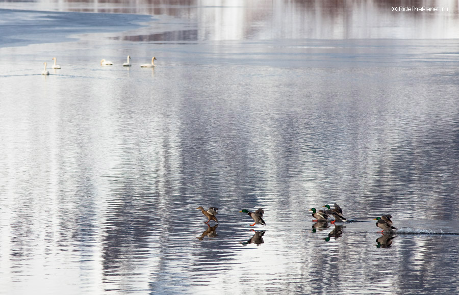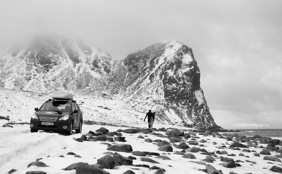 Местные серферы выглядели вполне довольными, пробултыхавшись в волнах при нас не менее часа под срывающимся с неба снегом. Мы же залезть в воду не решились...