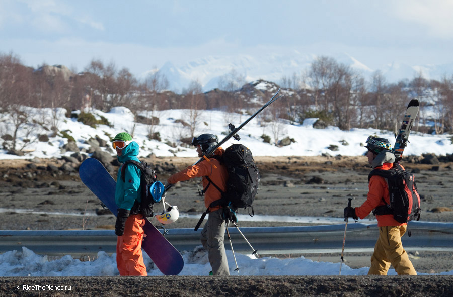 Из-за близости моря и течения Гольфстрим на Лофотенском архипелаге достаточно мягкий климат для заполярных широт. Частые локальные циклоны приносят немало осадков, поэтому свежий снег весной — это здесь норма, как нас уверяли местные райдеры и гиды. Структура снега здесь тоже немного отличается от континентальных горных районов из-за небольших суточных перепадов температуры. И снег здесь часто переменчив, даже на одном маршруте. Чем дальше массив от моря или фьорда вглубь острова, тем суше, и более влажный вблизи побережья. Естественно, как и погода, снегообразование и лавинная обстановка в горах Лофотенских островов немного отличается от Кавказа или Альп.