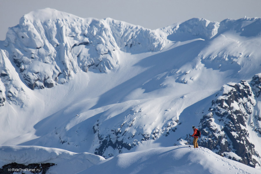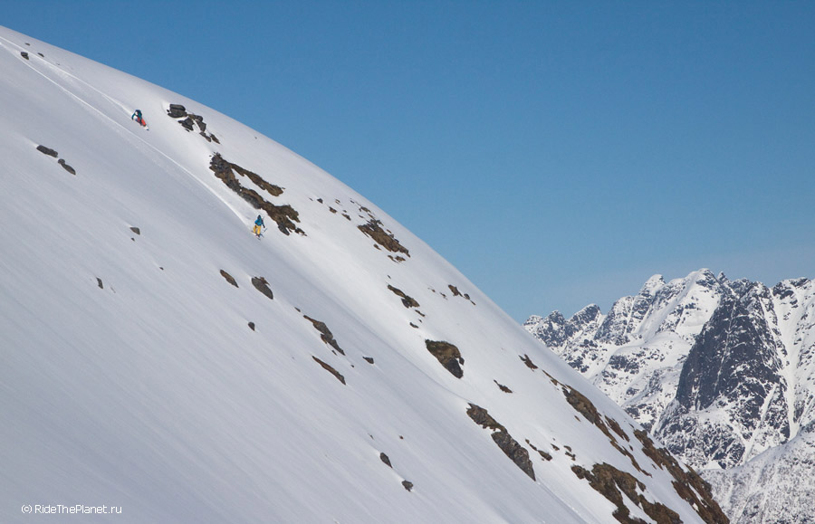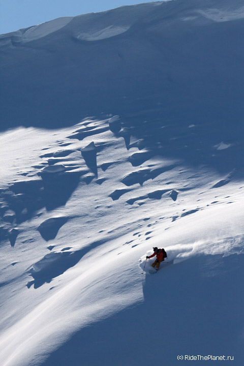 Естественно, как и в любых новых горах, чтобы понять рельефы, снег, экспозиции склонов и многое другое, нужно провести здесь довольно много времени. Поэтому для катания на островах в первое время лучше прибегнуть к помощи местных гидов, хорошо знающих районы и их особенности. Горы здесь не самые простые и довольно дикие, факт.
