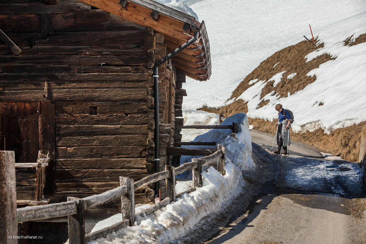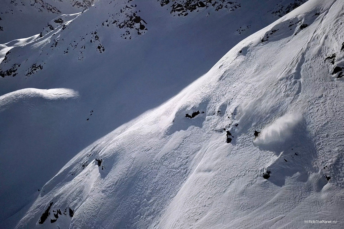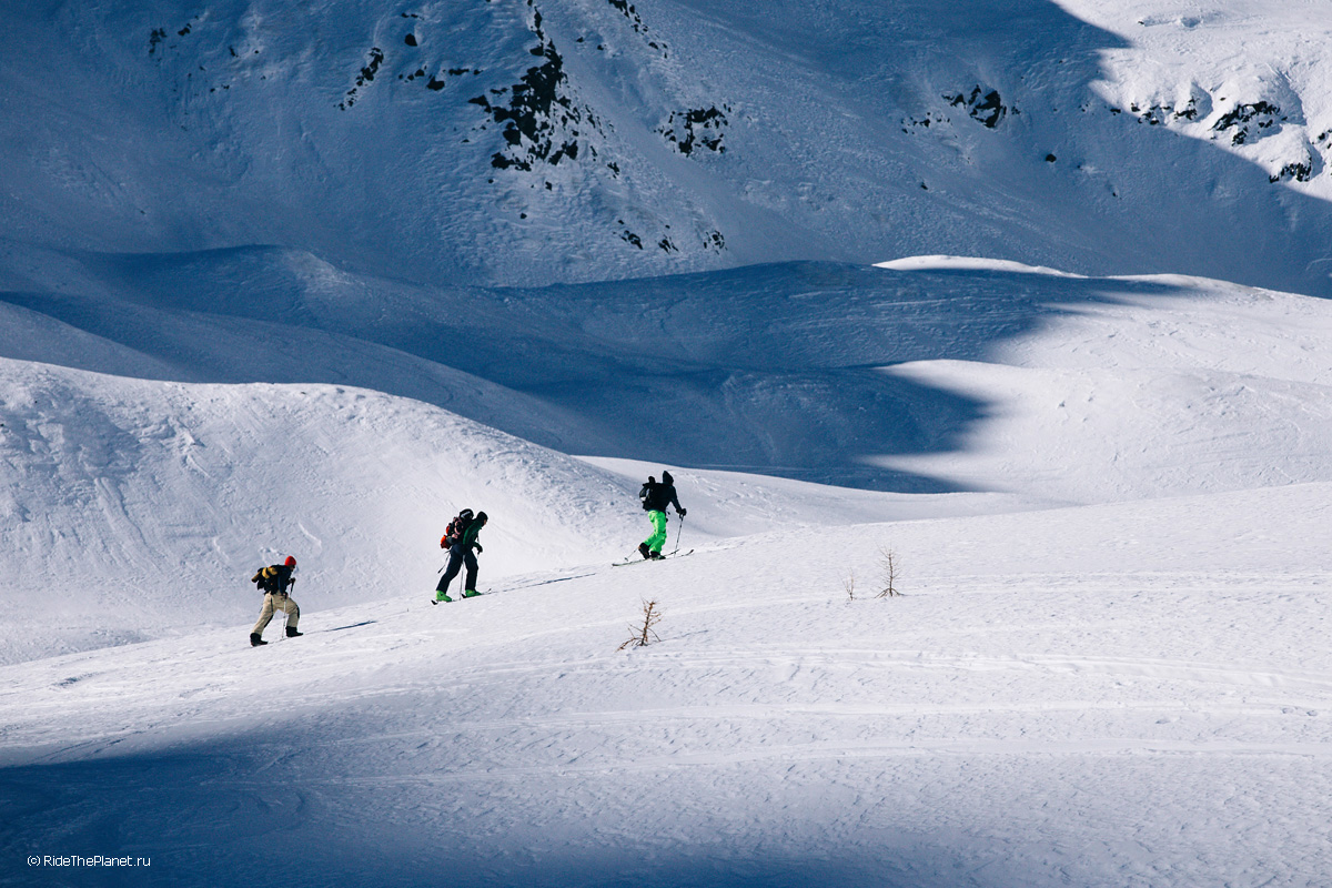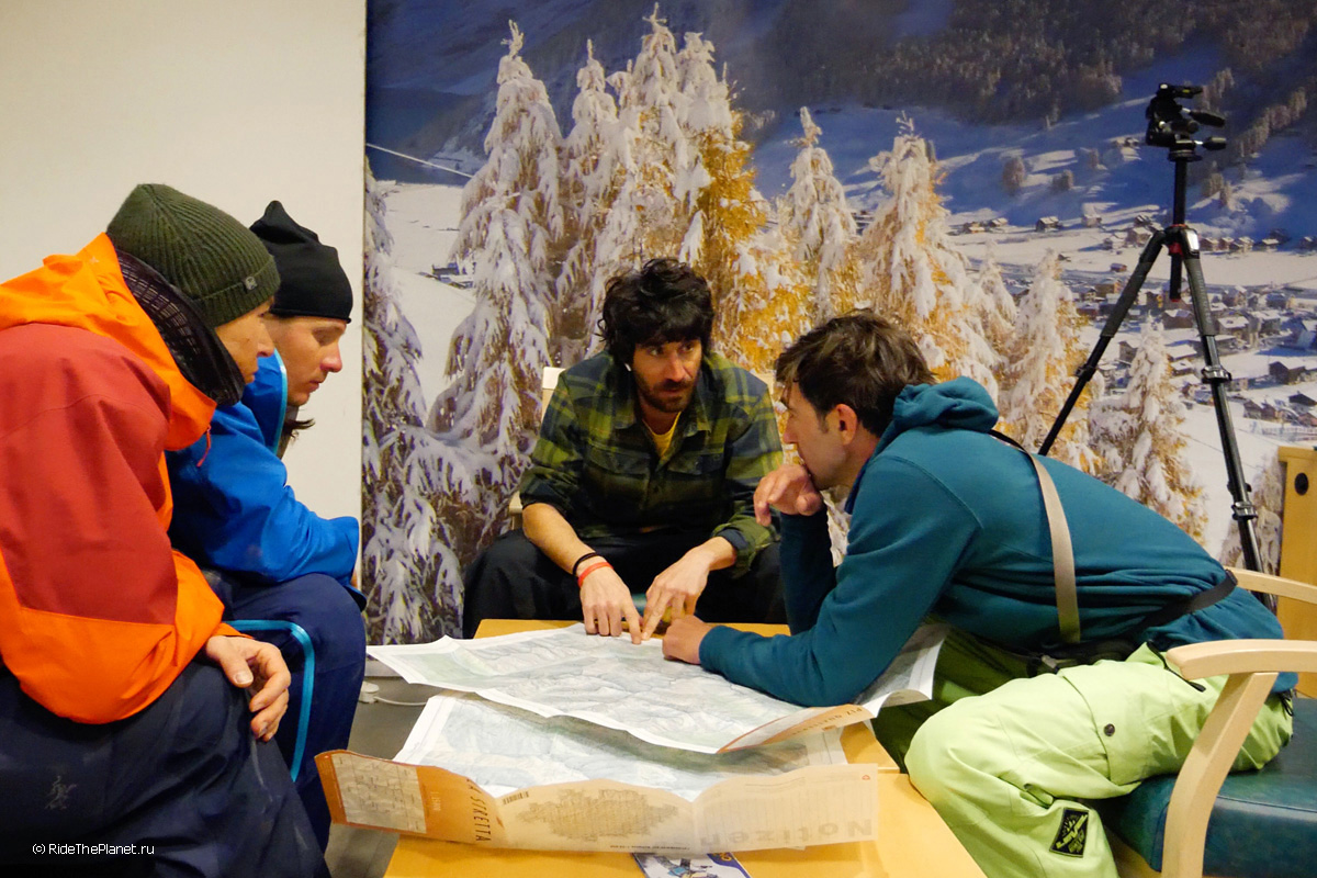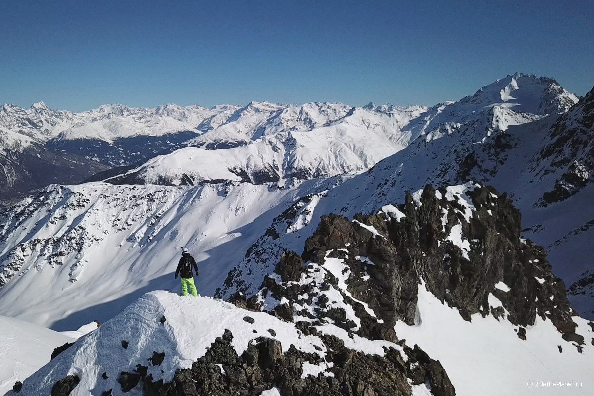 Сейчас же я был впечатлен масштабами и доступностью зоны фрирайда. Здесь большие горы, есть и альпийские скальные зоны и неплохой “катабельный” лес. Поразило обилие рельефа для бэккантри фристайла – много плавных гребней, перегибов и обширных снежных полей. К сожалению, незадолго до нашего приезда сильный ветер сдул весь свежий снег на большинстве склонов, оставив заструги и непробиваемый наст, поэтому нашей команде пришлось изрядно погулять на сплитбордах и скитуре по окрестным долинам, чтобы найти подходящие рельефы и хороший снег. Зато мы многое увидели. Порадовала погода – все время нашего пребывания в Ливиньо светило солнце, некоторые картинки из этого путешествия навсегда останутся в памяти.