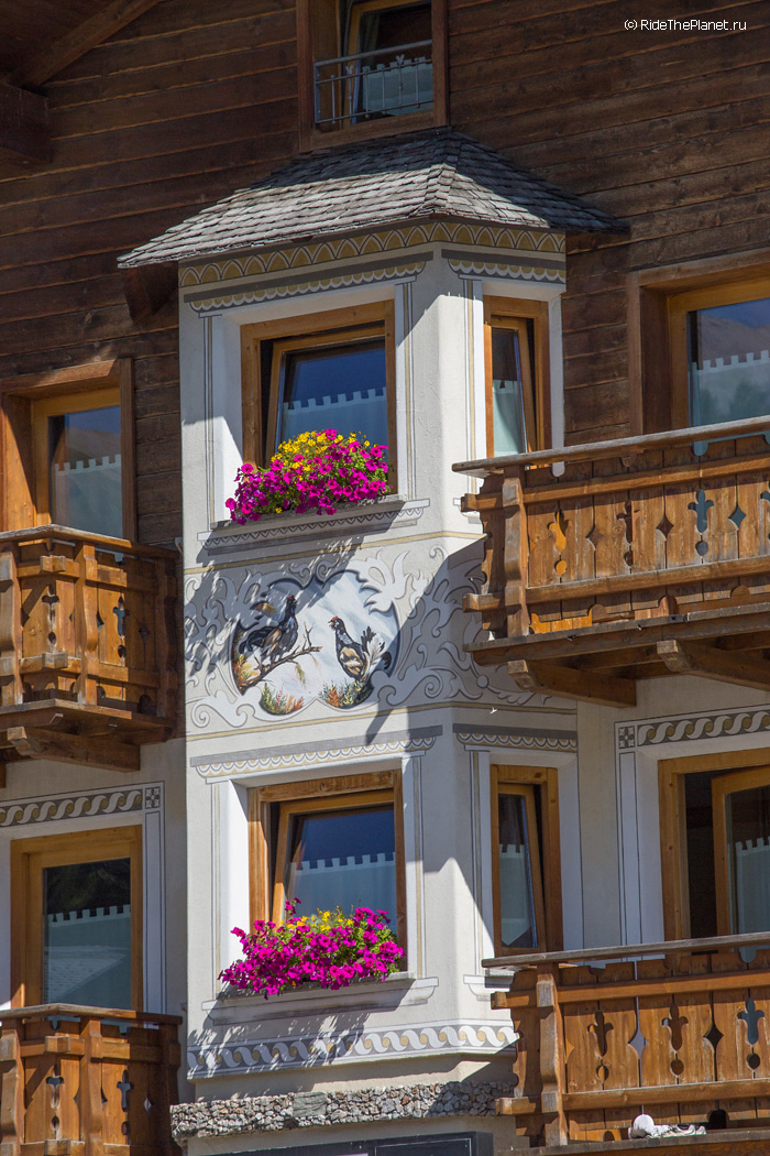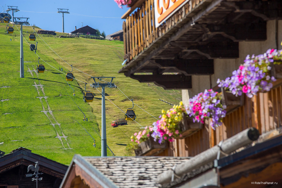 В долине очень красиво и просторно – горы высокие, но при этом не нависают и не давят. И конечно, огромное озеро в конце ущелья добавляет эффекта – катаясь по склонам в Carosello-3000, ты видишь его практически со всех трейлов. Все домики в долине построены в едином стиле и издалека не всегда понятно, то ли зданию пару сотен лет, то ли его построили только вчера. Везде все невероятно чисто и ухожено, создается впечатление, что газоны в долине и на склонах стригут каждый день.