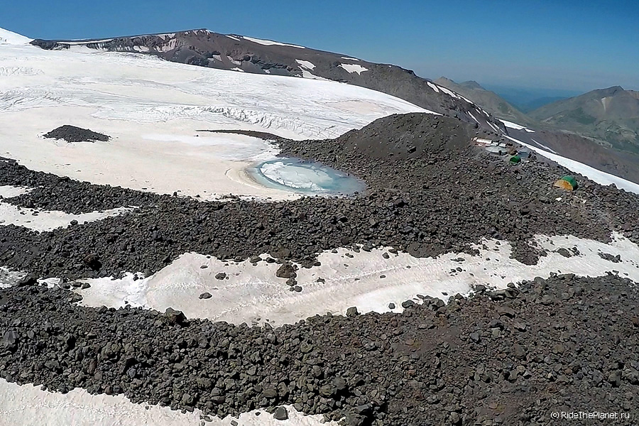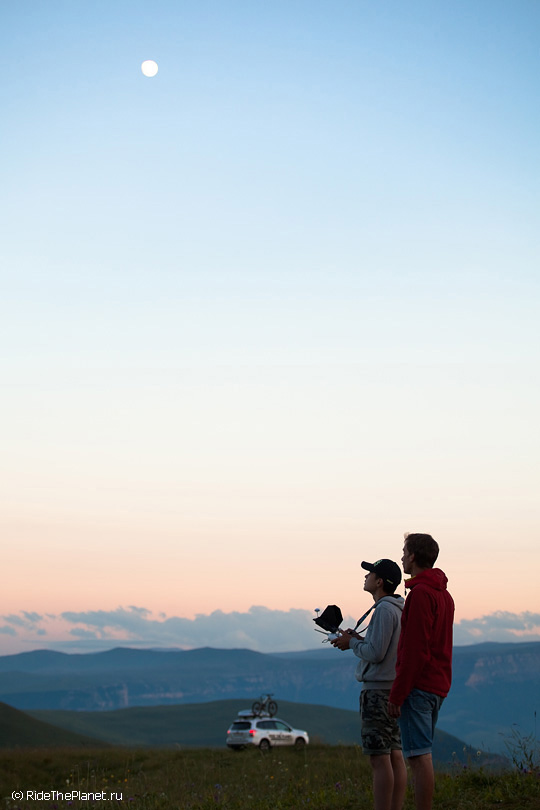 Наш базовый палаточный лагерь находился на высоте около 3200 метров, и именно оттуда мы начинали все наши походы в поисках интересных линий и рельефов для катания. Естественно, приходилось очень много ходить пешком и иногда даже нести велосипед на себе. Физически эти несколько дней в Северном Приэльбрусье дались всей команде совсем не просто. Мы в полной мере ощутили суровые условия гор, когда ночью в середине июля может начать идти снег, и когда, чтобы приготовить завтрак и набрать воды надо расколоть лед в замерзшем за ночь ручье. Несмотря на трудности, все остались очень довольны и чувствовали себя отлично. И яркие впечатления и картинки из этого трипа до сих пор «догоняют».