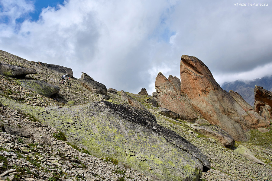 Северное Приэльбрусье – это тысячи квадратных километров незаселенных горных территорий. Для меня катание на маунтинбайке в этих горах представляет из себя нечто особенное – только я и горы. Здесь нет ленточек, ограничивающих трассу, нет магазинов, кафе и гостиниц. Здесь нет ничего, кроме величественных и не тронутых цивилизацией ландшафтов. Перемещаясь по горам и катаясь, ты можешь рассчитывать только на себя и друзей, которые с тобой.