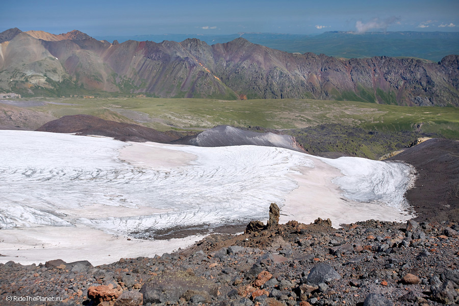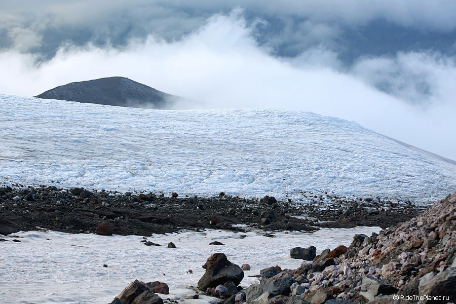 Рельефы в непосредственной близости от Эльбруса поражают масштабами. Ледники стекают в ущелья громадными белыми реками, растягиваясь на много километров. Находясь здесь нельзя не заметить особенности горной породы Эльбруса – по большей части это застывшая лава, когда-то извергавшаяся этим вулканом. Пожалуй, именно этому происхождению Эльбруса мы обязаны тем, что можем подобрать для маунтинбайка подходящие спуски на высоте 3 или 4 тысячи метров над уровнем моря – стекающие с массива ледники и причудливый вулканический грунт создали длинные и ровные осыпи и морены. И хотя они не так просты как кажутся, спуски по ним на велосипеде подчас доставляют огромное удовольствие.