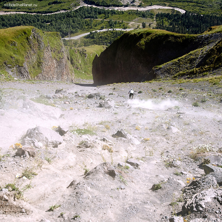 Катание в больших горах, особенно на Кавказе очень разнообразно. Скорости варьируются от очень медленных до рекордно быстрых, в зависимости от рельефа. Катание, обычно, довольно жесткое и постоянно проходит по большим и «живым» камням, по осыпям и гребням. Катание требует от райдера концентрации и контроля – здесь можно легко сломать не только велосипед, но и травмироваться самому.