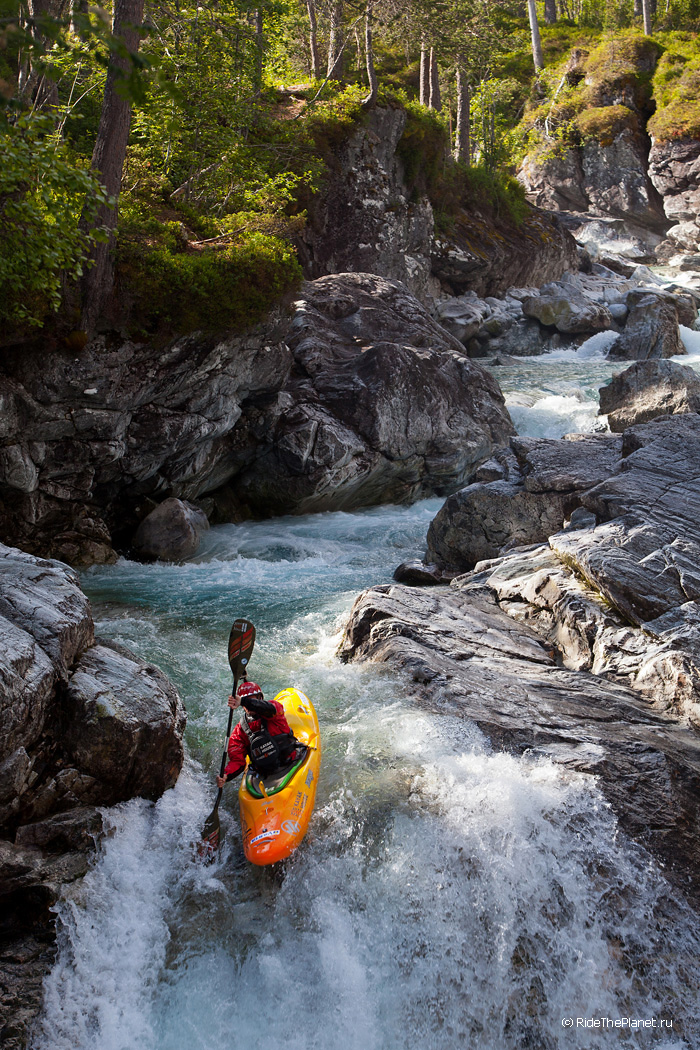 Когда в последней нашей поездке мы ехали вдоль реки Раумы, смотря в окно, я задумался: «А откуда здесь столько воды?» Даже не так: «А откуда здесь СТОЛЬКО воды???» Через каждые 500 метров с гор стекает полноводный ручей, водопад или впадает река. При этом наверху не видно каких-то особых ледников или снежных шапок. Обилие влаги в воздухе, конденсат, специфика почвы и растений, удерживающих влагу – вот такие чудеса природы и делают Норвегию раем для каякеров. Характер горных рельефов, дороги, не самая сложная береговая обстановка на реках и фантастическое количество воды!
