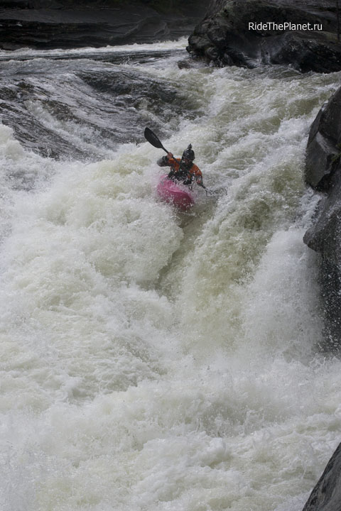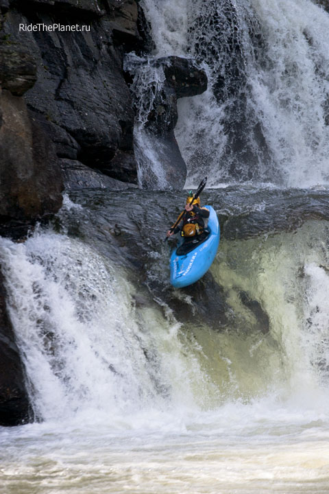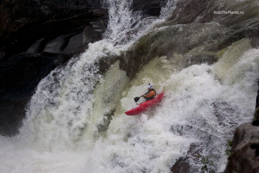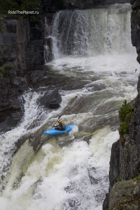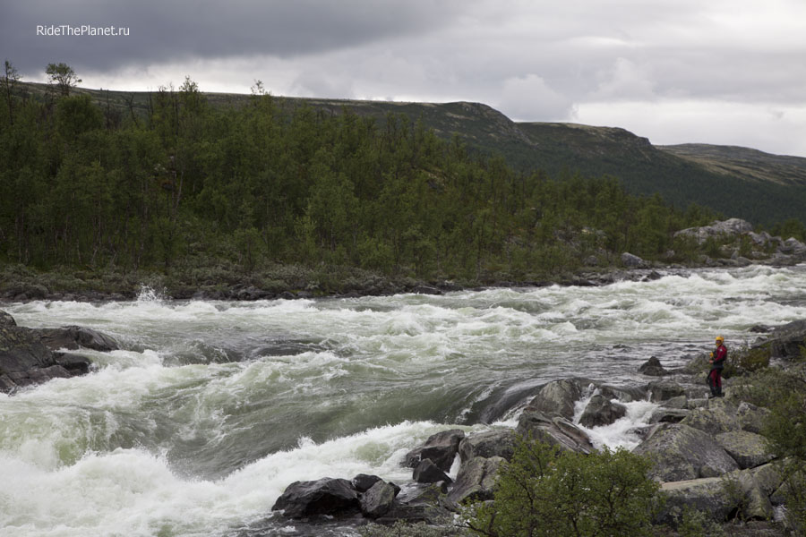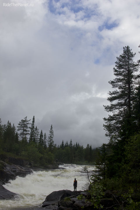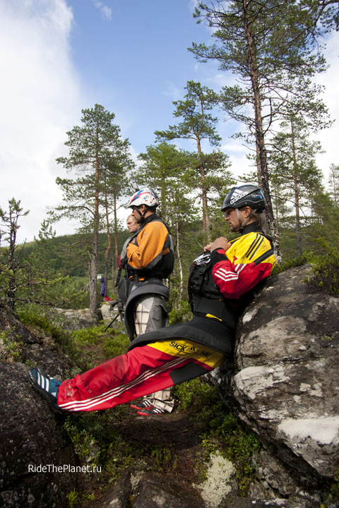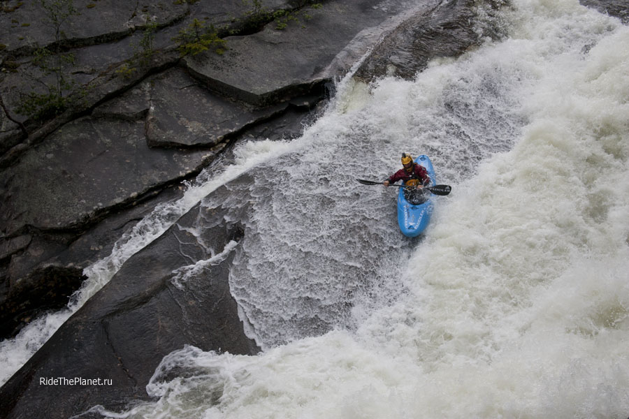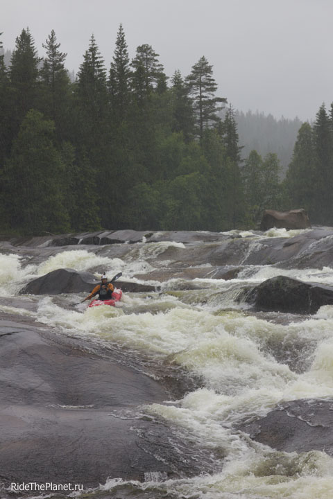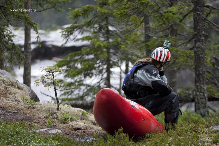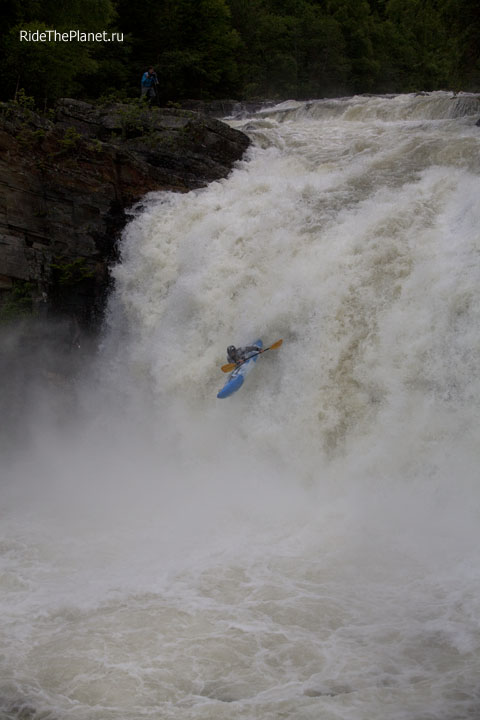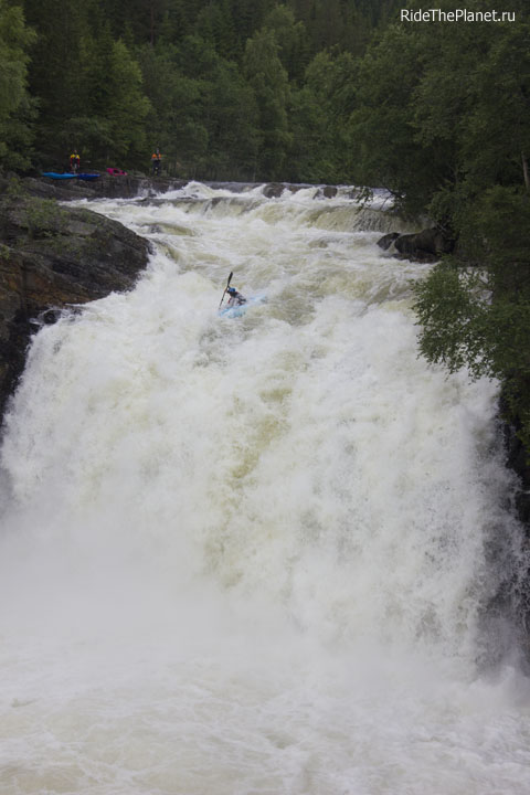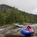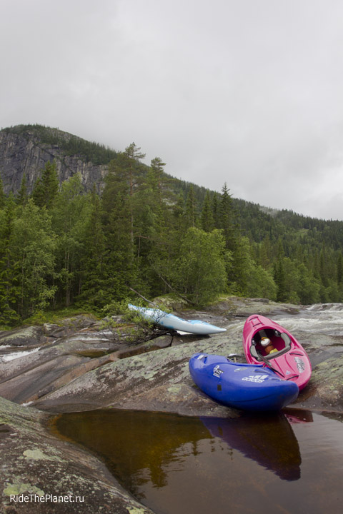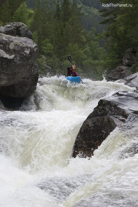 Ваня Рыбников: «Реки Телемарка показались мне сильно не похожими на стандартные широко известные реки Норвегии. Здесь вода имеет бурый болотный цвет, а дропы все замусорены камнями. Плавая по рекам, все-таки ощущалось, что сезонность этого региона это весна, а вовсе не июль, хоть и дождливый. Во всех речках, которые мы проплыли, все время хотелось долить воды или почистить приземления. Несмотря на все это, классно покатались и попытались проехать все самое интересное».