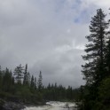 Мимо городка Рюйкан, через перевал, горное плато с видом на напоминающую вулкан гору Гаустатоппен, по дороге среди снежников и горных озер — «vatn», мы добрались до речки Скогса (Skogsåa). Здесь в каньоне с берегами, заросшими соснами, мхом и черникой, был обнаружен эффектный водопад – а в точной каякерской терминологии, все-таки «слайд» — сброс воды без вертикального падения.