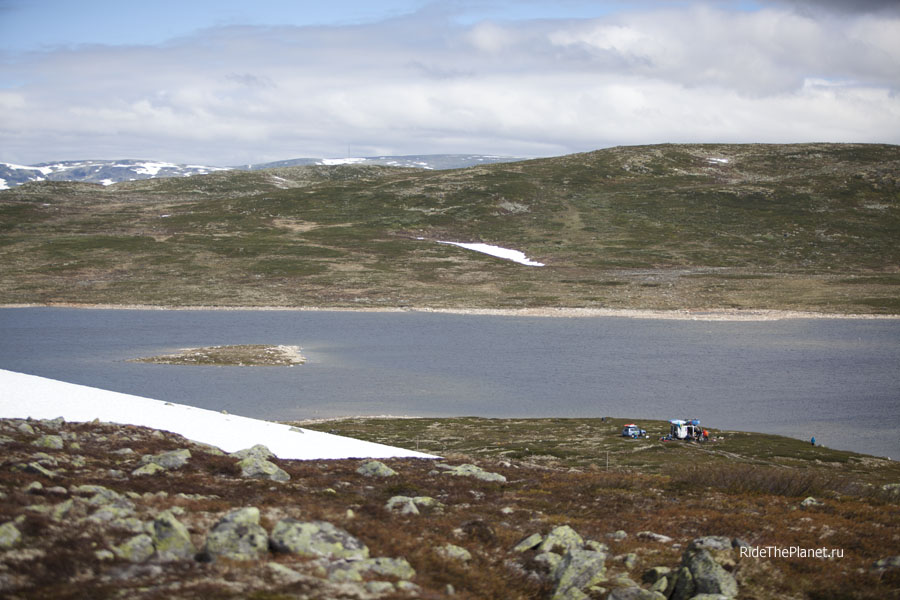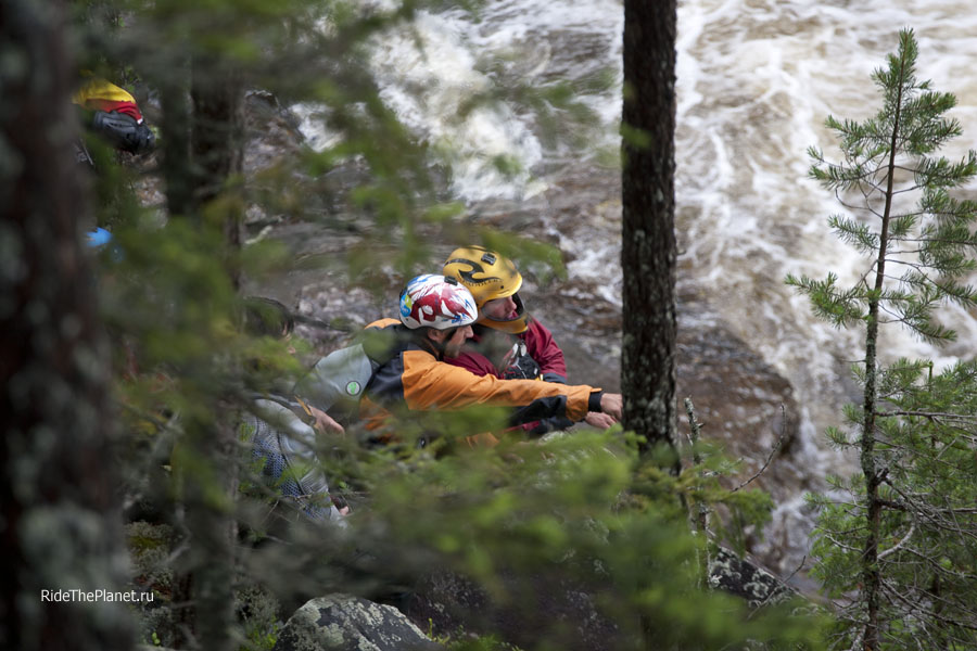 «Мы проплыли очень бодрую секцию на Аусбигде, можно сказать в «альпийском стиле», — рассказывает Алексей Лукин. — Подплыли, не вылезая заглянули за срез, нашли приземление или выход и поехали. Удалось не теряя времени, быстро проплыть всю секцию, и при этом четко отсечь все неоправданно опасные пороги и непроходимые секции. В конце этого участка нас ждал отличный кемпинг на берегу красивейшего озера».