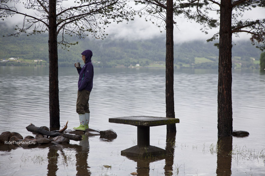 Дожди, встретившие нас в Норвегии, продолжают идти каждый день. Сведения о наполненности рек расходятся – и все приходится оценивать своими глазами, накручивая десятки километров по горным дорогам. Сейчас мы перемещаемся в регион городка Восс (Voss) – норвежской «столицы» экстремального спорта, где круглый год проходит множество соревнований, включая известный фестиваль «Voss ExtremeVeko», ежегодно в июне собирающий в Воссе каякеров, бейсеров, парапланеристов, музыкантов и сотни зрителей. Отсюда недалеко и до Бергена — одного из самых красивых городов Норвегии, где мы планируем провести день отдыха – хочется верить, что это будет и день отдыха от непрерывного дождя
