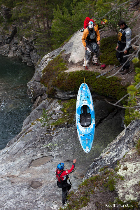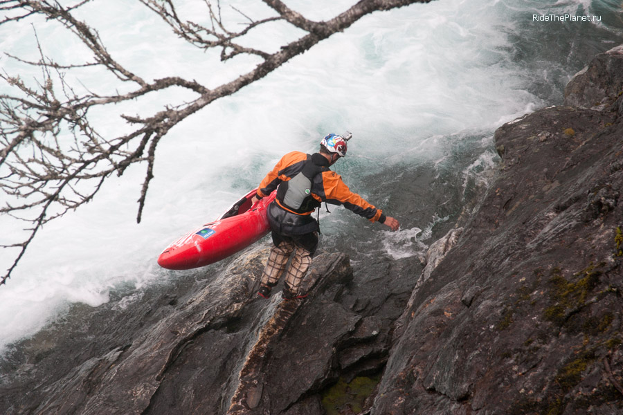 «Перед отъездом из России мы знали, что практически во всей Норвегии много воды, — говорит Егор Воскобойников. — Поэтому в голове сразу стали крутиться мысли о возможности проехать водопады, которые работают только по такой воде. Очень хотелось прыгнуть знаменитый «даблдроп», «лэйк то лэйк» и «двадцатку», ну и, конечно, еще раз подумать о прохождении легендарного Флеминг фолс. Но Норвегия — это северная страна, расположенная близко к морю, так что погода здесь меняется очень часто и очень быстро, а вместе с ней и уровни воды в речках. Так и получилось. Когда мы приехали, там, где надо было побольше воды, ее было маловато, а где-то ее было наоборот многовато. Так что все эти препятствия пришлось оставить на следующий раз».