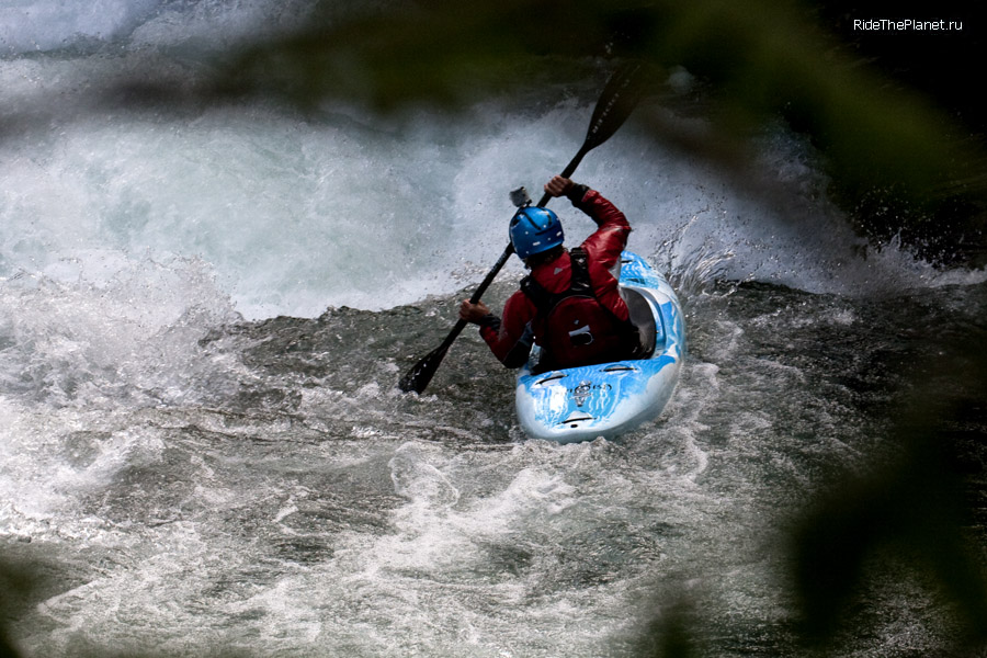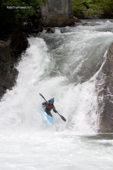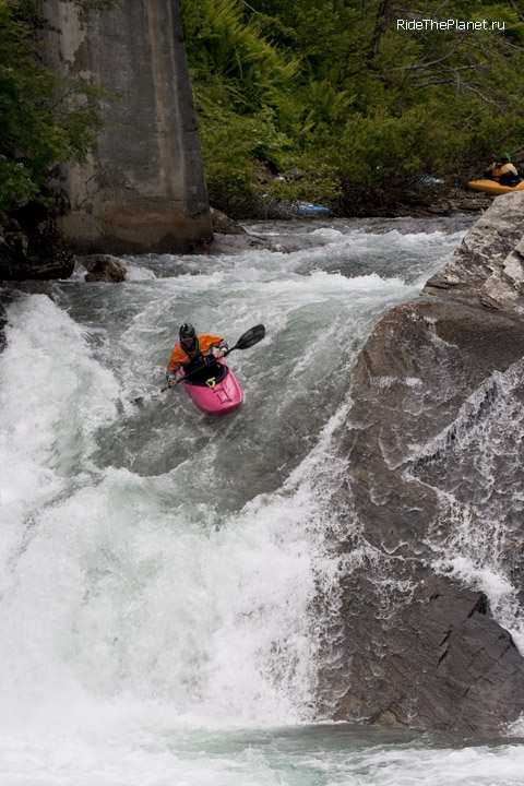 На месте нас ожидали настоящие чудеса природы – на препятствиях, которые ребята планировали проехать, водопаде Double Drop и сложносочиненном каскаде – слайде Lake-To-Lake, эффектно падающем в большое озеро, уровень воды был… слишком мал! Как и на «волне» — фристайльном споте под мостом у самого городка Восс. Первый день прошел в разъездах и легком недоумении, под аккомпанемент не забывающего поливать слабого, но настойчивого дождя…