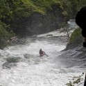 «Самым сложным и задумчивым препятствием за всю поездку для меня стал водопад на притоке Раундасельвы, сразу после «туннельдропа». Это большой красивый водопад метров 10 высотой. Ширина реки у водопада примерно метров 15, но что бы удачно его прыгнуть, нужно точно попасть в небольшой заход метра полтора шириной, объехав одну бочку и успев повернуть нос лодки влево в начале падения. В общем, самое задумчивое препятствие за последнее время», — вспоминает Егор Воскобойников.
