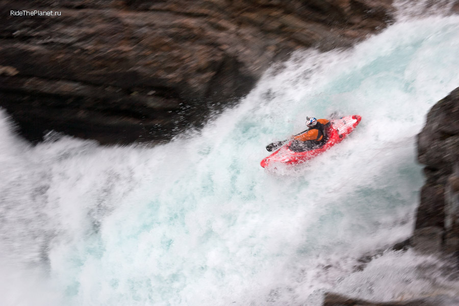 «В этой четвертой для меня поездке по Норвегии я первый раз прыгнул водопад Ноусбрейкер на реке Раундалселва, — рассказывает Дмитрий Данилов. — Перед прыжком у меня не было какого то конкретного плана прохождения, я даже так до конца не выбрал линию захода — мне было это не очень важно, я просто очень хотел его прыгнуть. За свою беспечность мне пришлось поплатиться — неприятно «заплыл» из-за сорванной юбки и сильно ушиб ребра. Думаю, это послужит мне хорошим уроком на будущее».