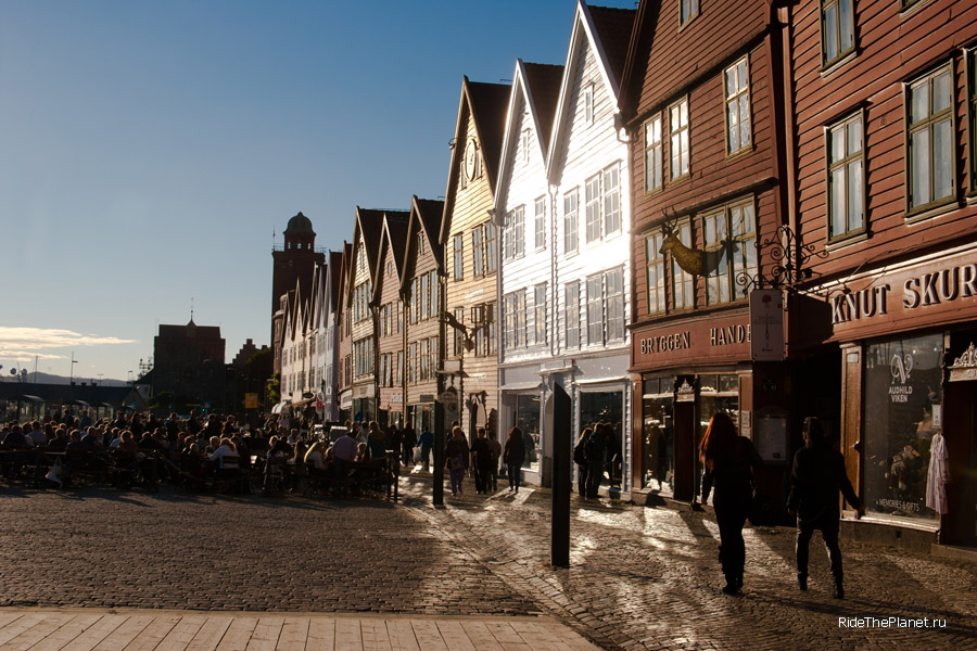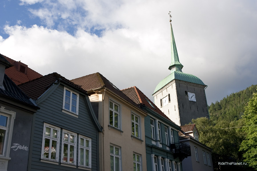 На кривых улочках Бергена, среди разноцветных деревянных домов, напоминающих старые русские дачи, можно с наслаждением плутать не один день. Хотя бергенская погода – одна из традиционных норвежских шуток. По статистике, дождь здесь льет около 275 в году — но вполне может и повезти. Нам подарили здесь солнечный день – один из двух за всю поездку:)