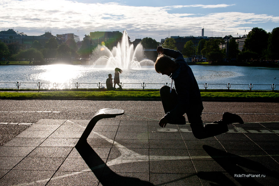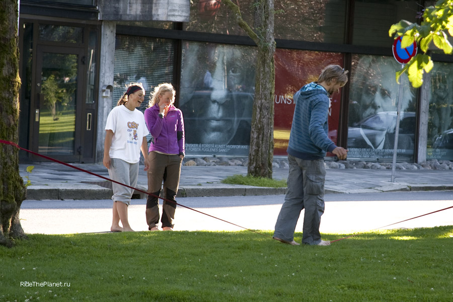 Восс — норвежская столица экстремального спорта, круглый год здесь проходят самые разные соревнования. Знаменит международный фестиваль «Voss Extremesportsveko» – контесты каякеров, показательные прыжки бэйсджамперов, заезды по местным горным дорогам на лонгбордах и, конечно, ежедневные вечеринки и опенэйры… Когда мы оказались здесь, в Воссе было тихо, но настроение все равно чувствовалось: высоко над черепичными крышами, на фоне шпиля старой каменной церкви, крутили в небе трюки парапланеристы. По узким улицам курсировали машины, загруженные разноцветными лодками, а по брусчатке пешеходных дорожек, объезжая бабушек и детей, изредка прокатывались ребята на солидных даунхилльных велосипедах… На берегу озера, под открытым небом, раскинулась выставка норвежского фотографа. Он объехал мир с камерой и вопросом к самым разным людям, «Что для вас свобода?» Под их монохромными портретами можно прочесть мысли по этому поводу – и, возможно, еще раз сформулировать свои, на ветру, под пасмурным норвежским небом.