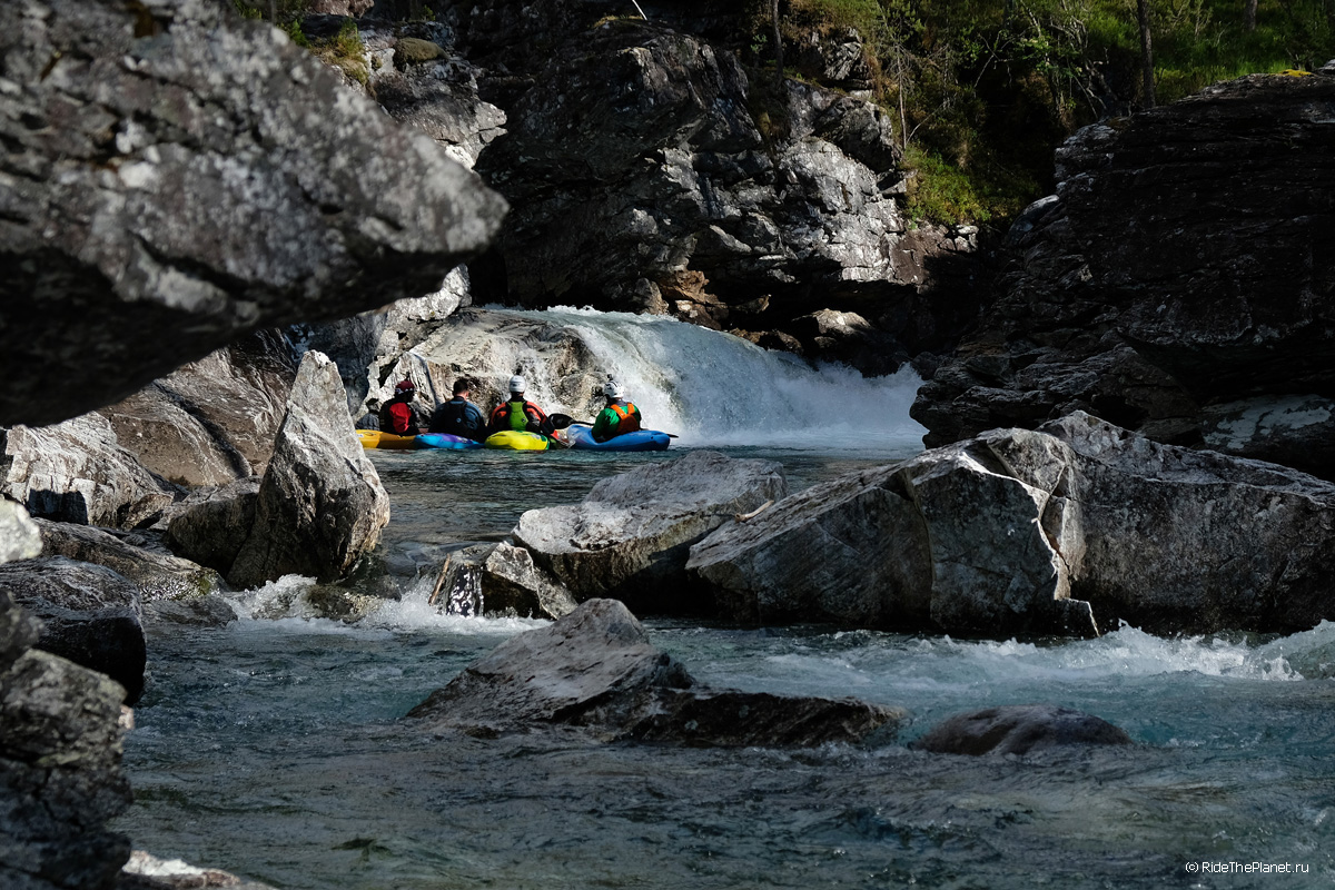 Когда же норвежское лето в разгаре, ущелья подсыхают и можно уже не бояться наступить в мох у дороги и провалиться в воду по щиколотку, приходит пора искать воду в реках с дождевым питанием. Горный рельеф здесь таков, что за день не самого сильного дождика, реки могут набрать воды с берегов столько, что некоторые участки станут снова интересны для сплава, а некоторые сплавные секции и препятствия даже закроются, из-за большого количества воды.
