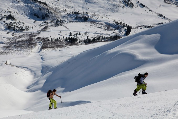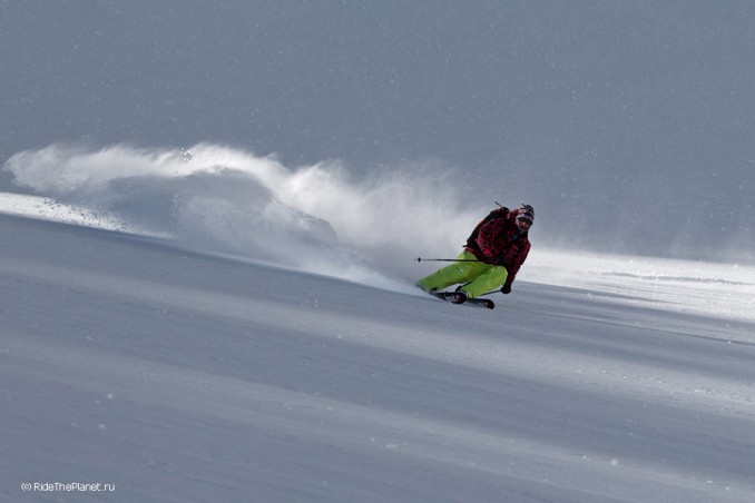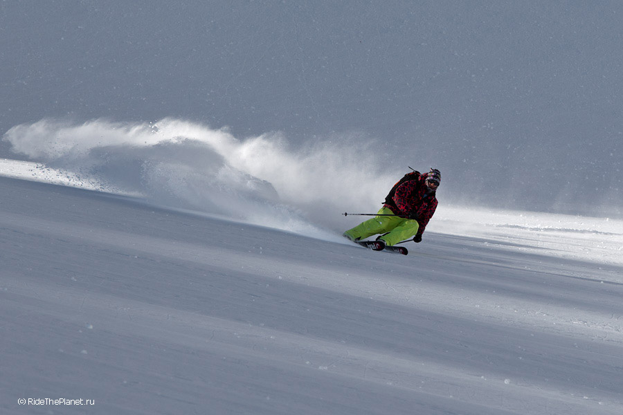 Когда ты поднимаешься наверх, у тебя есть возможность прочувствовать всю красоту окружающей природы, причем ты видишь склоны с совершенно разным светом по мере перемещения солнечного диска. Да, всего лишь один спуск за день, зато какой! Никаких следов, и при этом ты дорожишь любой складкой рельефа, потратив полдня на подъем!