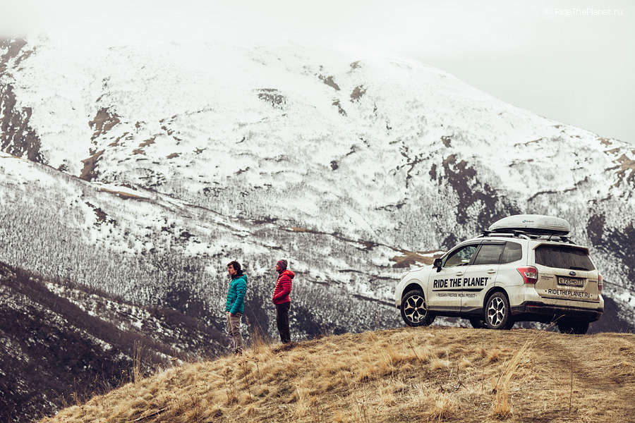 Russia. Nothern Osetia. RTP official car — Subaru Forester at the pass in Fiagdon valley. Photo: Sergey Puzankov