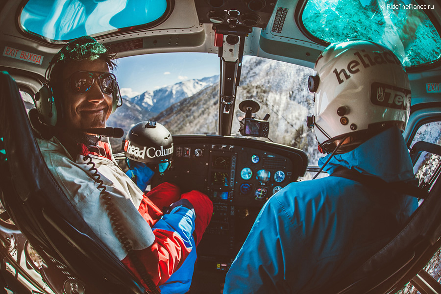 Russia. Nothern Osetia. «Heliaction» company's helicopter «Eurocopter A350». Pilot Arseniy Boldyrev and rider Ivan Malakhov. Photo: Sergey Puzankov
