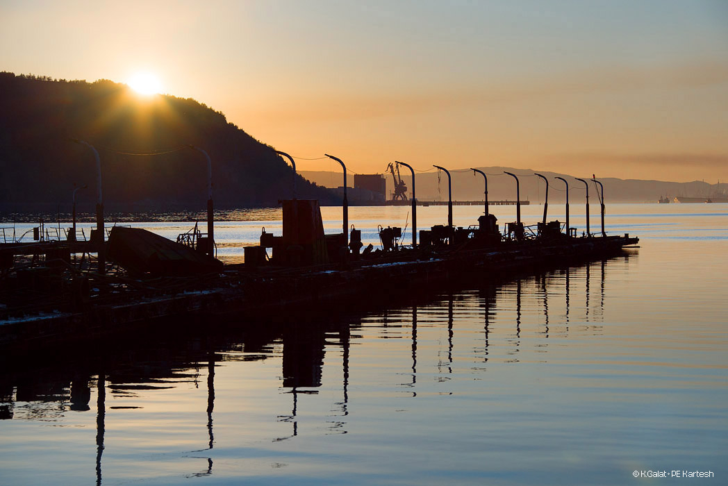 Мурманский морской порт занимает огромную территорию на побережьях Кольского Залива и является одним из крупнейших морских гаваней Европы. Он включает в себя торговый порт, рыбный порт, порт Атом-Флота – место базирования большинства атомных ледоколов российского Заполярья, множество доков и судоверфей. Мурманский порт – это царство воды, бетона и металла!