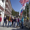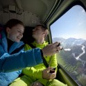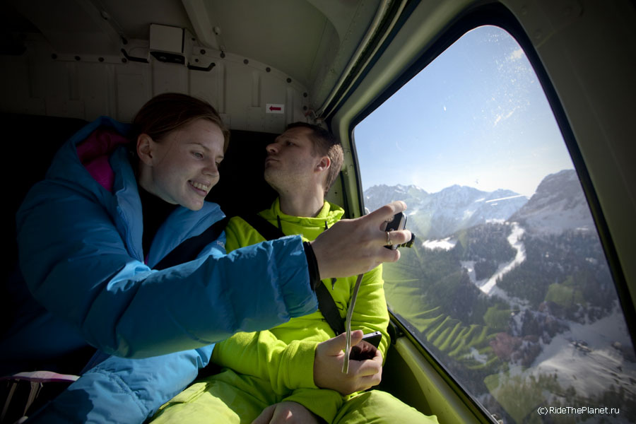 А на следующий день, после такой «разминки», мы отправились на следующее «испытание», к ангару местной вертолетной компании. Оккупировав вертолет, отчаянные журналисты на смеси нескольких языков просили показать «рок-н-ролл» — к радости скучающих пилотов, работающих здесь с непрерывным потоком клиентов хели-ски, как водители маршруток. Пролеты между скальными зубьями, в метрах над трещинами ледников, зависания над острыми каменными грядами и виражи с тотальным «завалом горизонта» — в ответ от пассажиров раздавались только вопли «А-а-а, ещеее!!»