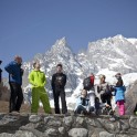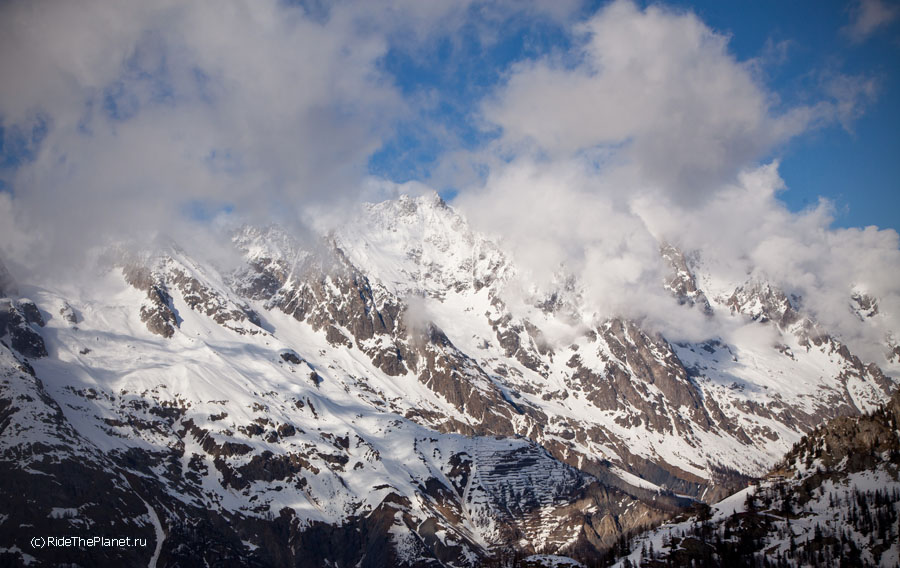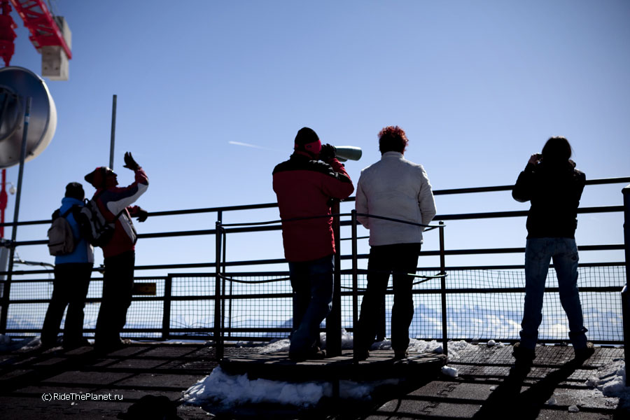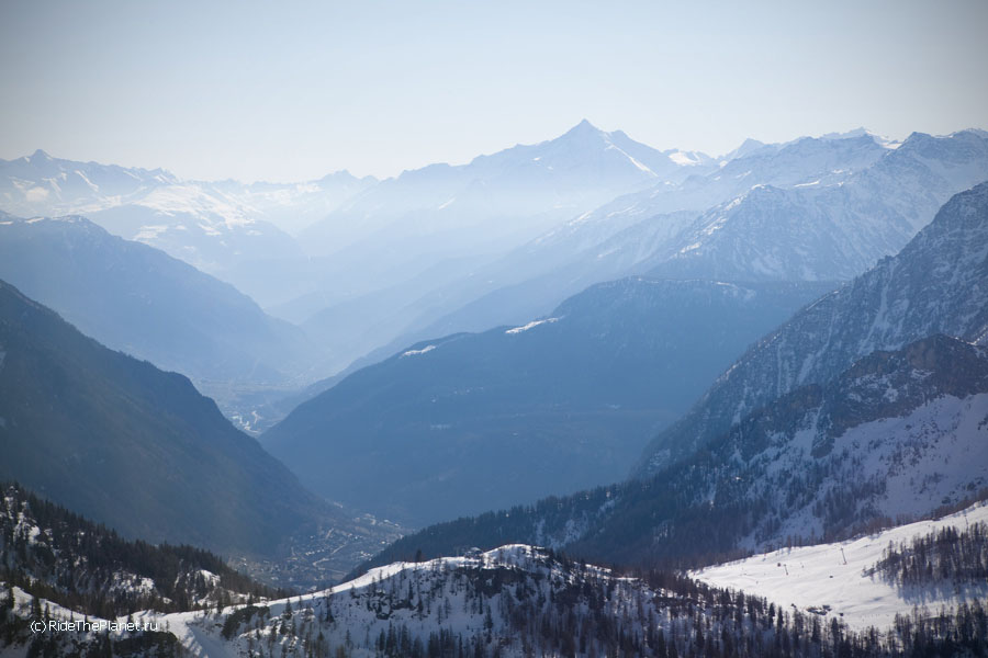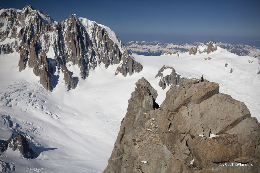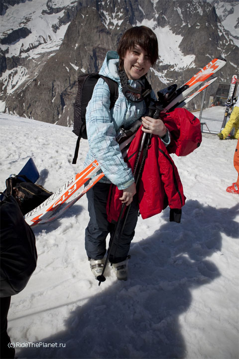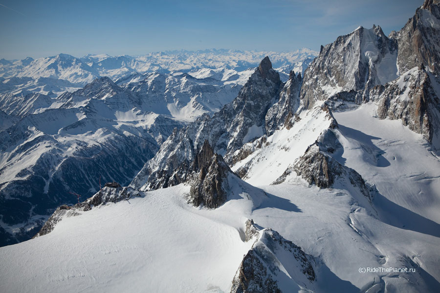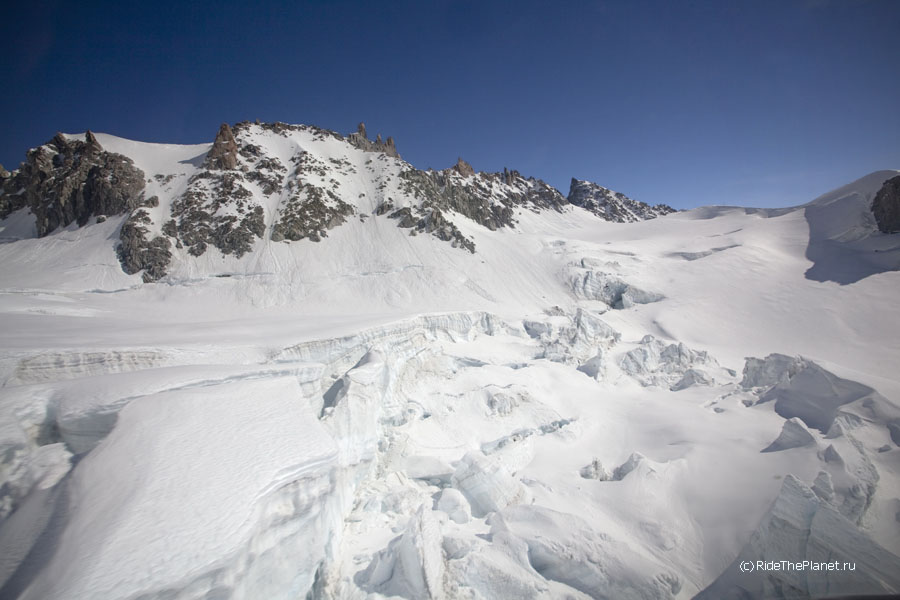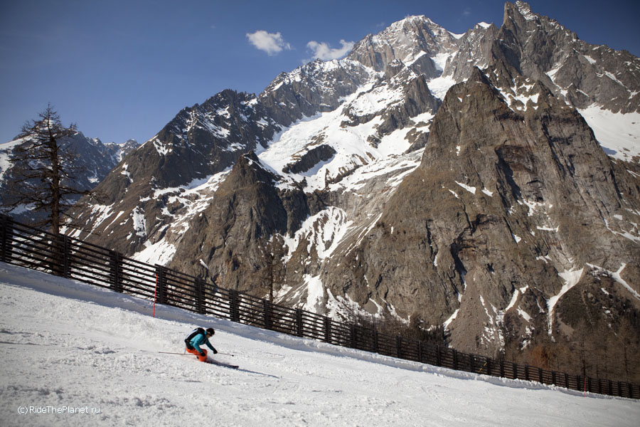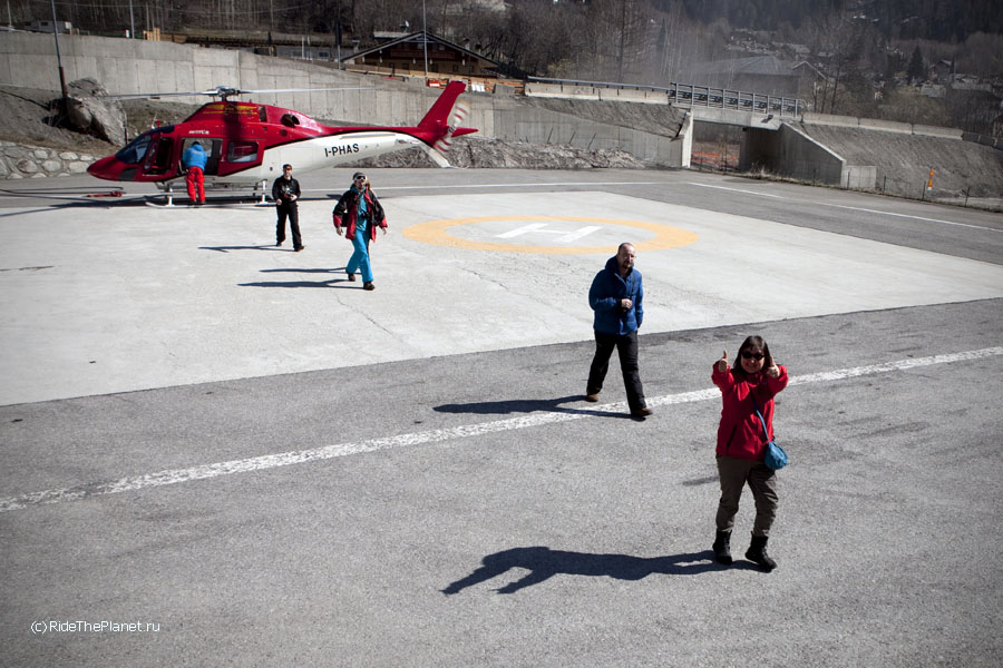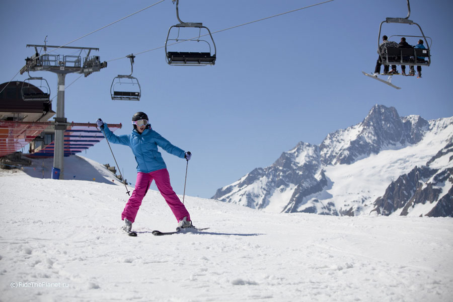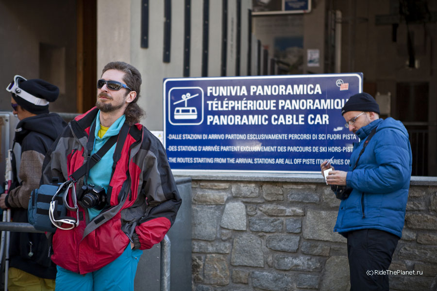 В один из дней все вместе мы поднялись на старинной канатной дороге на высшую доступную точку, Пунто Хелброннер. Подъемник работал последние в своей 60-летней истории недели, и вскоре закрывался навсегда, уступая место новой линии со стеклянными панорамными кабинами. Поскрипывающая ретро-канатка произвела на всех большое впечатление — как и вид на Белую долину Шамони, Маттерхорн и массив Монте Роза, хорошо видные с Монблана в ясный день.