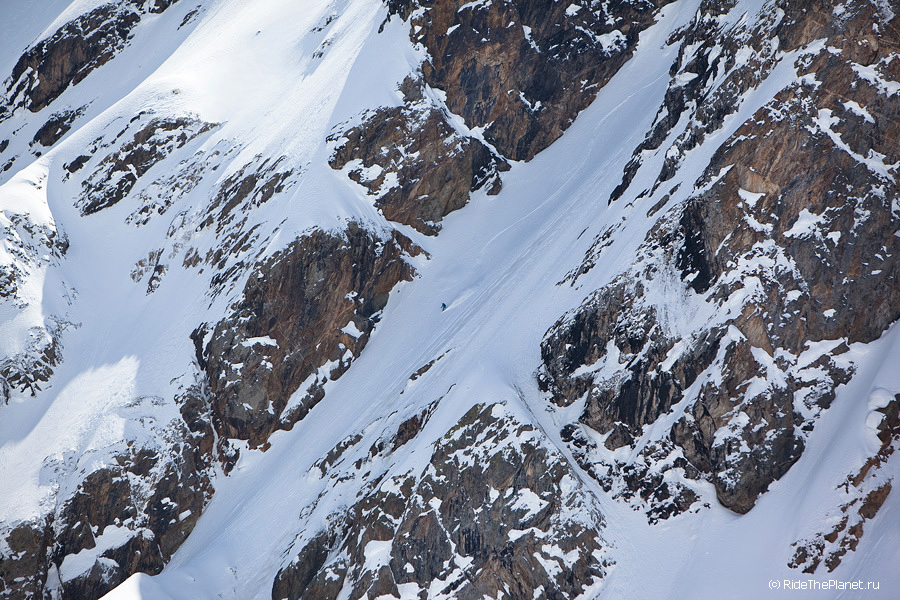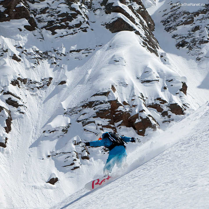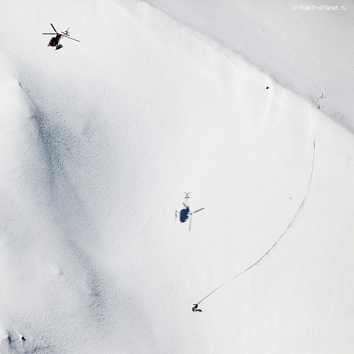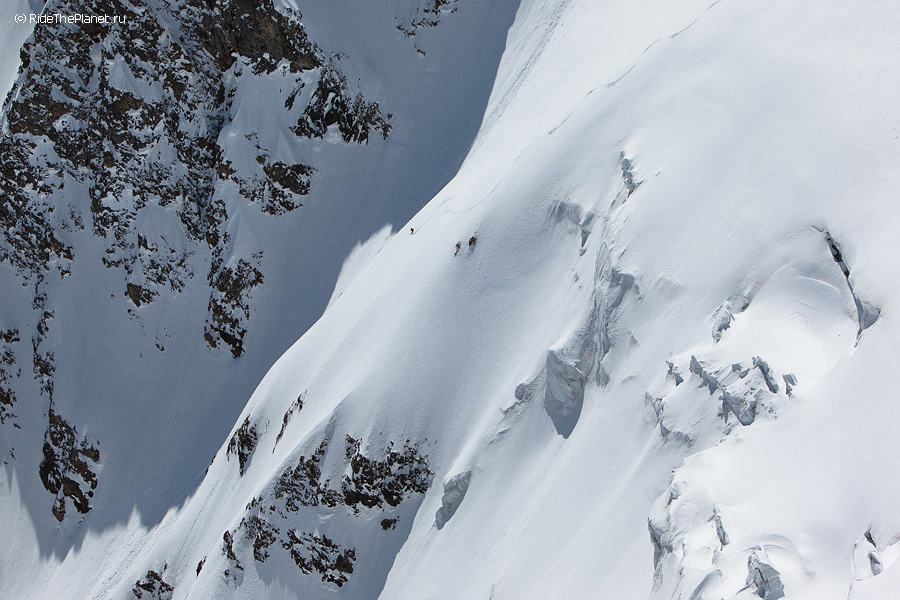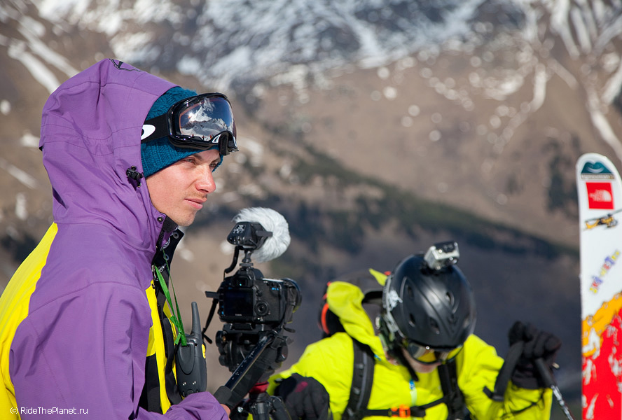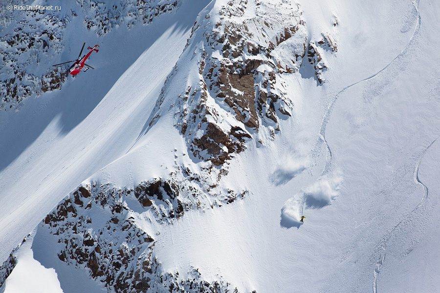 К.А.: Каждый этап съемок RideThePlanet был для меня какой-то отдельной историей. Норвегия два раза, Камчатка, Архыз — всё это удивительные места. Конечно, съёмки при помощи вертолёта, а особенно с ребятами из компании Heliaction — это очень круто! Очень здорово, когда ты летишь и сам можешь выбрать себе интересную линию, и к тому же просмотреть её с воздуха. Ну а в Приэльбрусье к этому прибавляется то, что мы в принципе более-менее знаем район и не тратили время на поиски рельефа и хорошего снега. И конечно, всё-таки здесь большие горы... Ледники, высадки под 4000 м, перепады в полтора-два километра... В общем, мы отлично покатались, надеюсь, и результат получится неплохой.