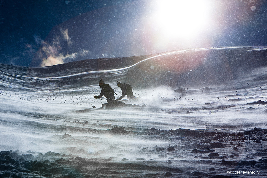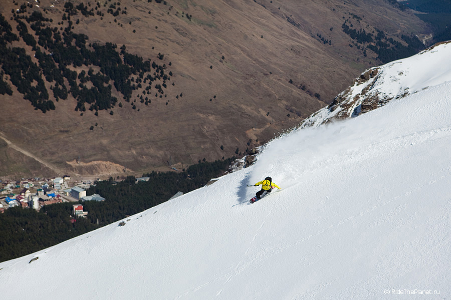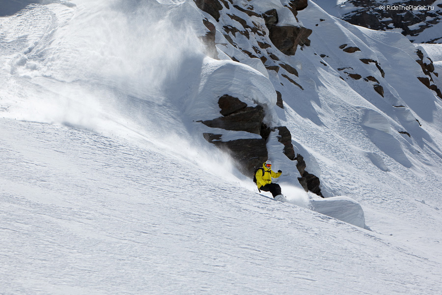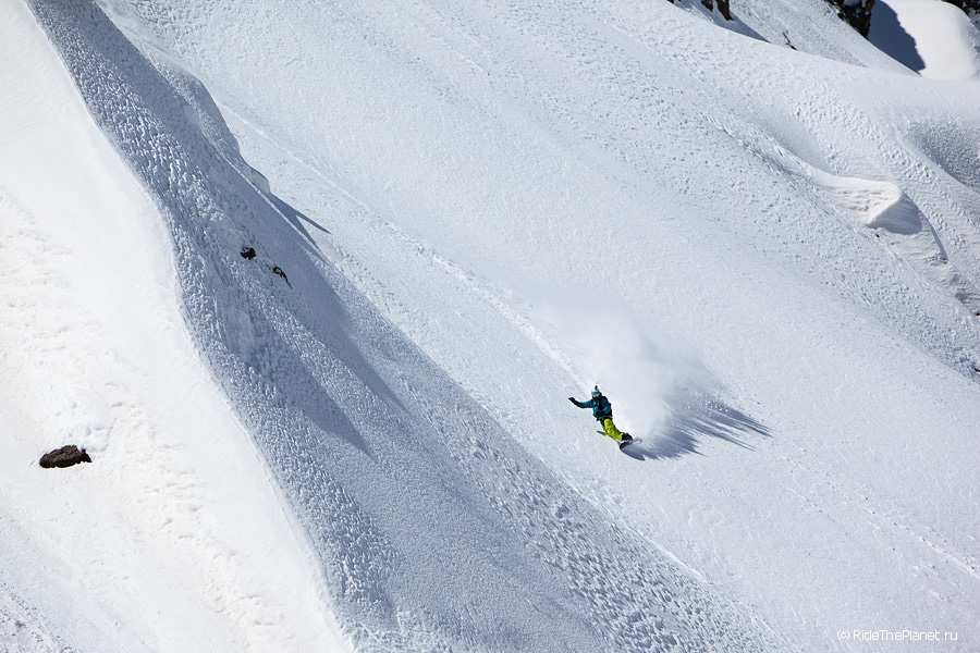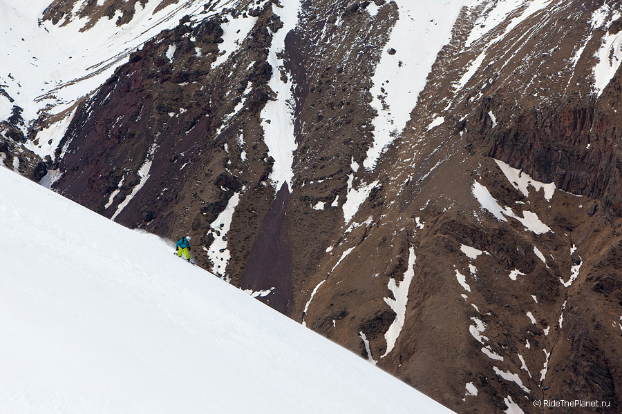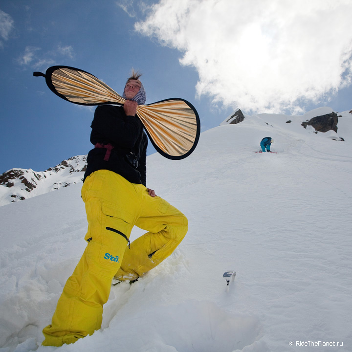 К.А.: Каждый этап съемок RideThePlanet был для меня какой-то отдельной историей. Норвегия два раза, Камчатка, Архыз — всё это удивительные места. Конечно, съёмки при помощи вертолёта, а особенно с ребятами из компании Heliaction — это очень круто! Очень здорово, когда ты летишь и сам можешь выбрать себе интересную линию, и к тому же просмотреть её с воздуха. Ну а в Приэльбрусье к этому прибавляется то, что мы в принципе более-менее знаем район и не тратили время на поиски рельефа и хорошего снега. И конечно, всё-таки здесь большие горы... Ледники, высадки под 4000 м, перепады в полтора-два километра... В общем, мы отлично покатались, надеюсь, и результат получится неплохой.