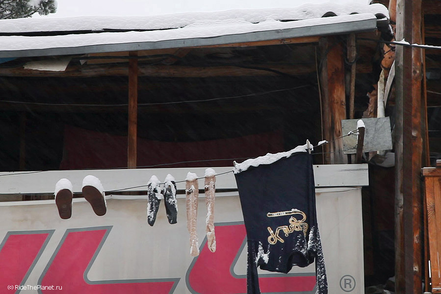 К.А.: Мне особенно запомнились спуск с вершинки в цирке Чипер, длинный проезд с «подушки» горы Когутай и катание в районе ледника Медвежий. И ещё эти съёмки запомнились очень длинными безостановочными проездами — самый длинный был около 1100 м перепада и 4 минуты езды. К концу спуска ноги подзабились, хотя я вроде всю зиму на лыжах без перерыва...
