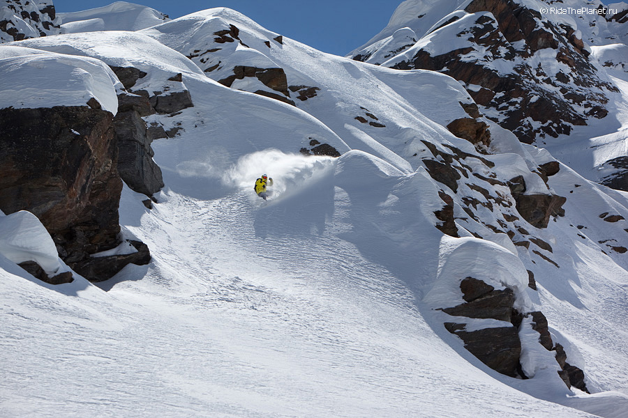 К. А.: Когда катаешься из года в год по одним и тем же склонам, взгляд немного «замыливается». А на самом деле, ведь стоит подняться немного подальше, на те же Чегетские «рога», и понимаешь,что был здесь последний раз лет 10 назад, и то летом. Некоторые наши высадки проходили в таких местах, куда пешком дойти сложно, а зимой — практически невозможно. И несколько спусков я точно могу отнести к самым запоминающимся за всю мою «фрирайдную жизнь» — а это уже около 15 лет катания в разных регионах, от Камчатки до Южной Америки...