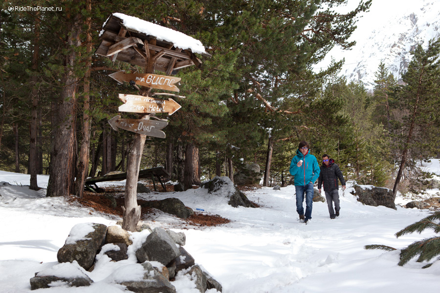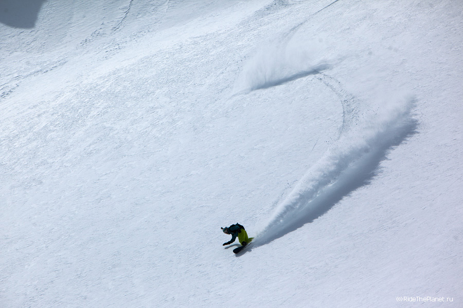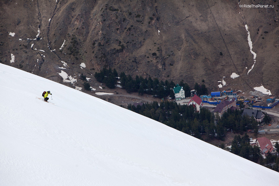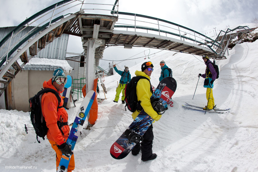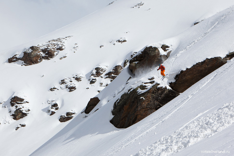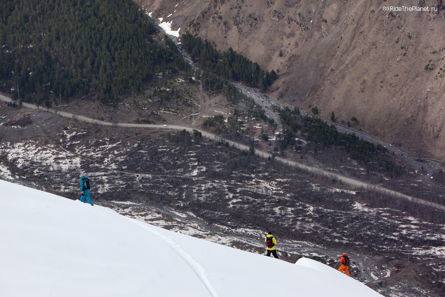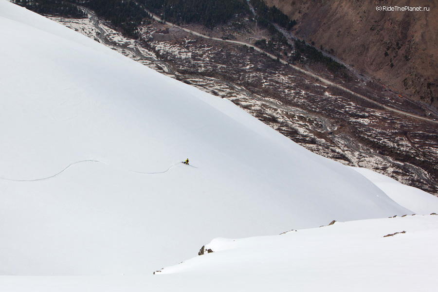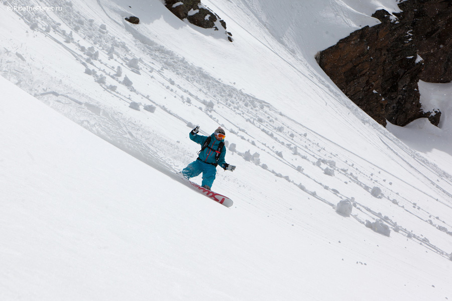 Высокогорный поселок Терскол, ставший базой для RideThePlanet в эти дни, — главная точка на фрирайд-карте России. Здесь родились и выросли Кирилл Анисимов и Александр Байдаев, горные гиды и опытнейшие фрирайдеры, постоянные участники съемок RideThePlanet. Многие месяцы и целиком зимние сезоны провели в Приэльбрусье Константин Галат и Егор Дружинин. Неудивительно, что в своих «домашних» горах большинство вариантов внетрассовых спусков для них знакомы и уже разведаны. Большинство, но, конечно же, не все — даже если кататься в Приэльбрусье годами, всегда останется, куда можно мечтательно посмотреть снизу. Этот район был и остается одним из интереснейших в мире по возможностям для фрирайда в формате big-mountain.