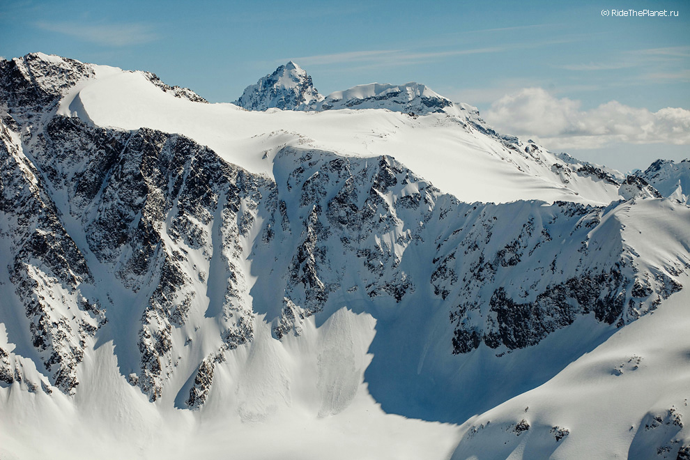«В апреле 2013 года мы снимали предыдущий фильм RideThePlanet о фрирайде в Приэльбрусье, и у нас в доступе постоянно был вертолет компании Heliaction с пилотом Александром Давыдовым для забросок райдеров и съемочной группы. Уже тогда мы планировали прокатиться по кулуарам на северной стенке в ущелье ледника Медвежий, но проведя более 10 минут в облетах скального гребня, мы не смогли найти ни одной более или менее безопасной точки для высадки на гребне и оставили эту затею.